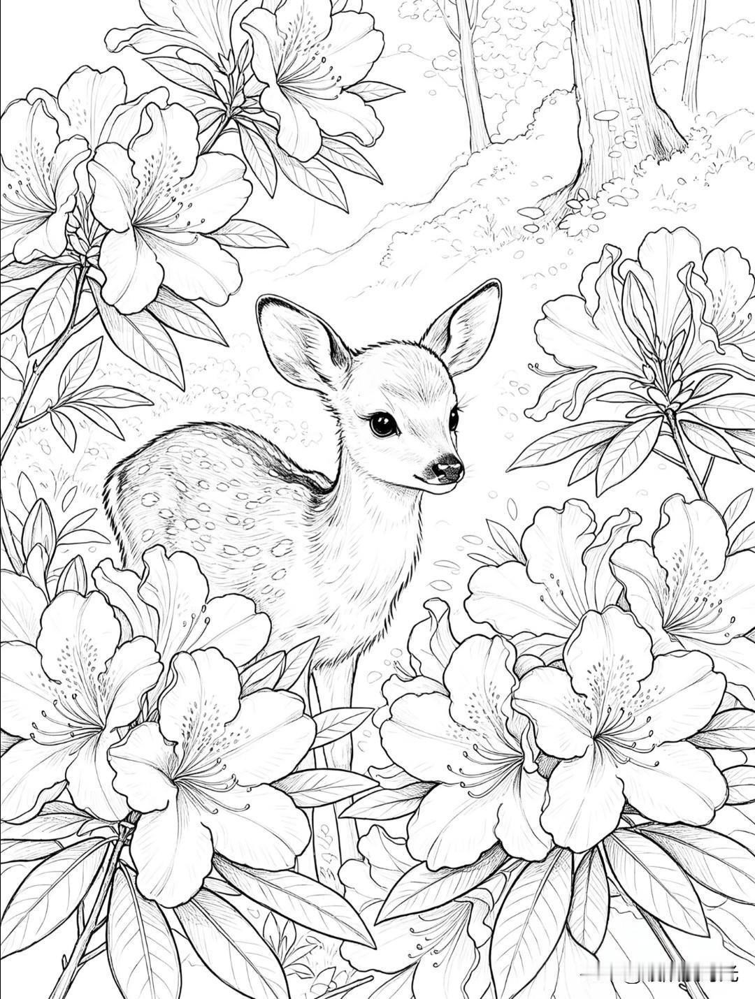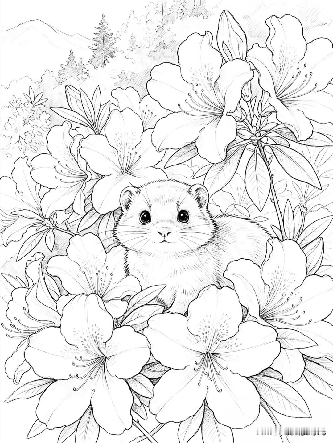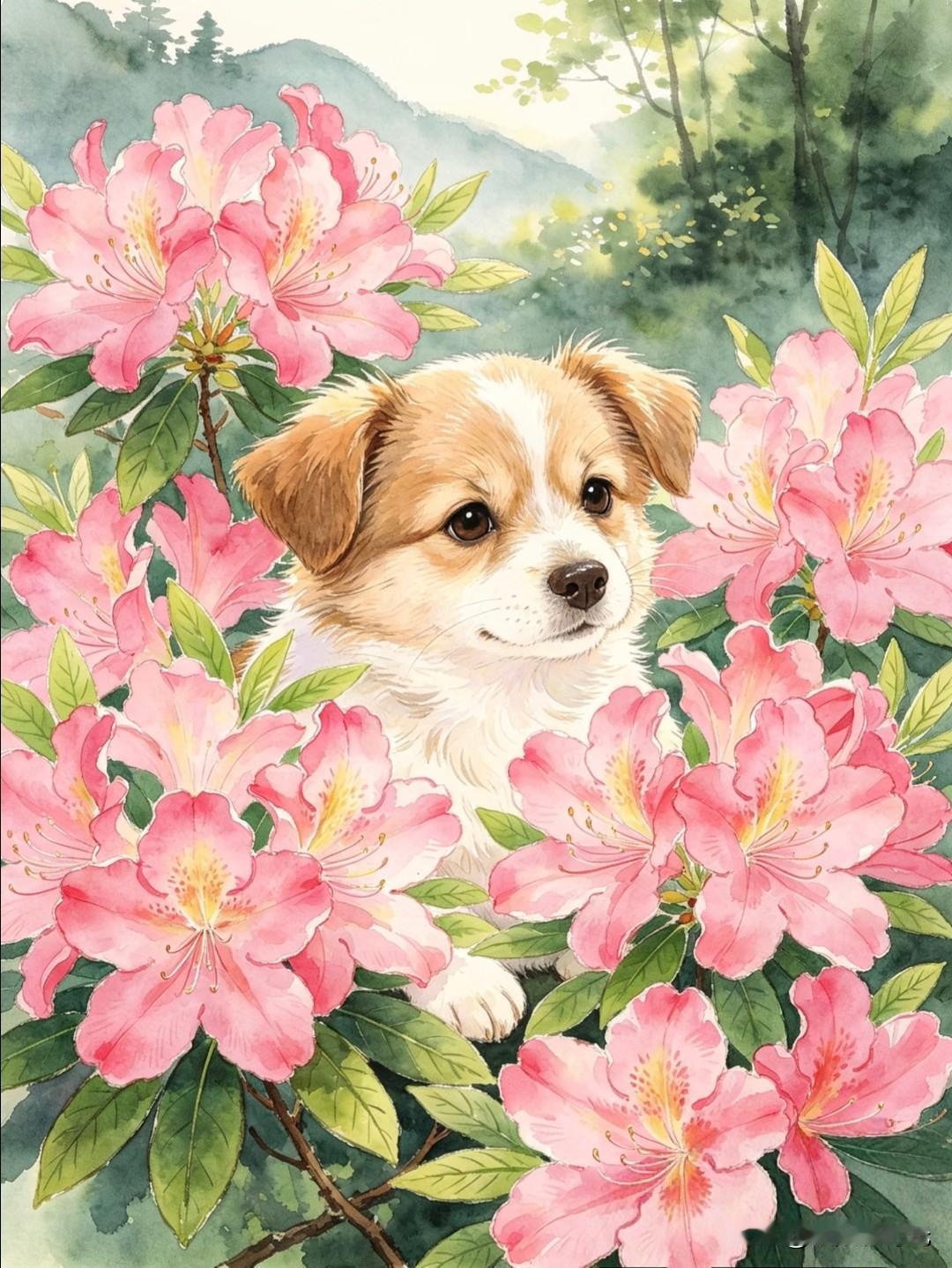 杜鹃绽放,小动物嬉戏,春日里的甜美瞬间。 幸运淇淇绘画素材分享 娇艳杜鹃植物动