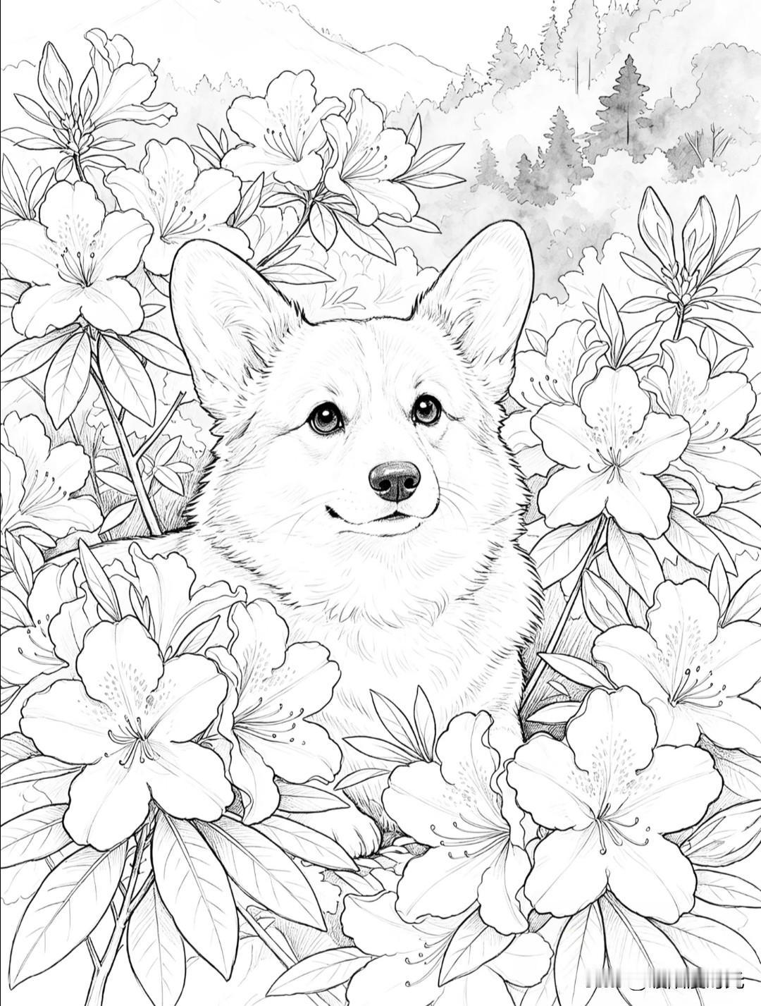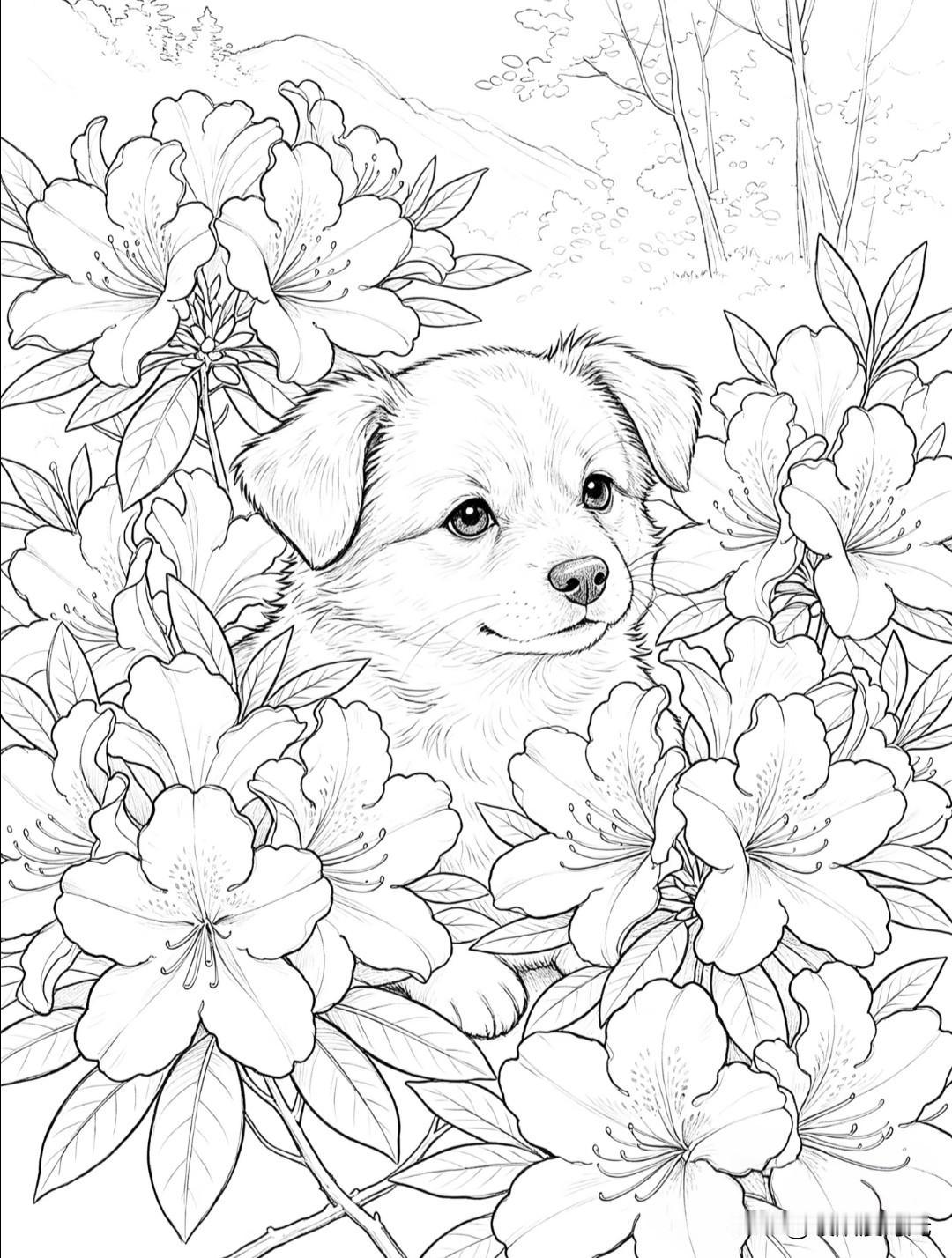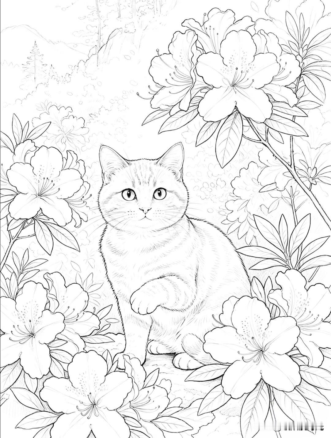 杜鹃绽放,小动物嬉戏,春日里的甜美瞬间。 幸运淇淇绘画素材分享 娇艳杜鹃植物动