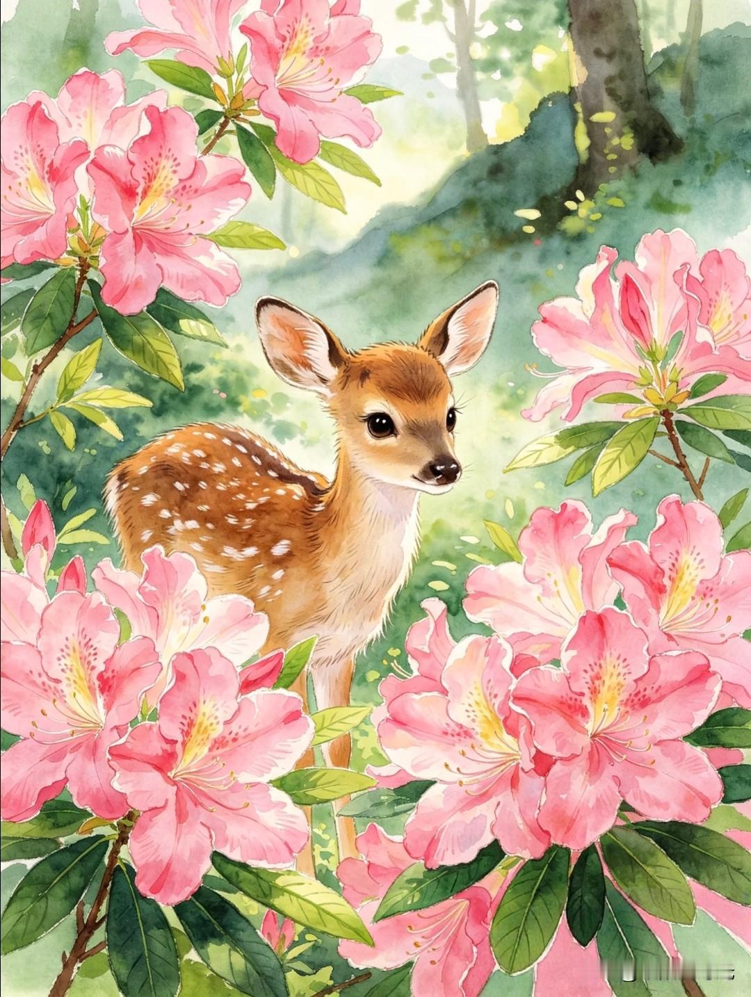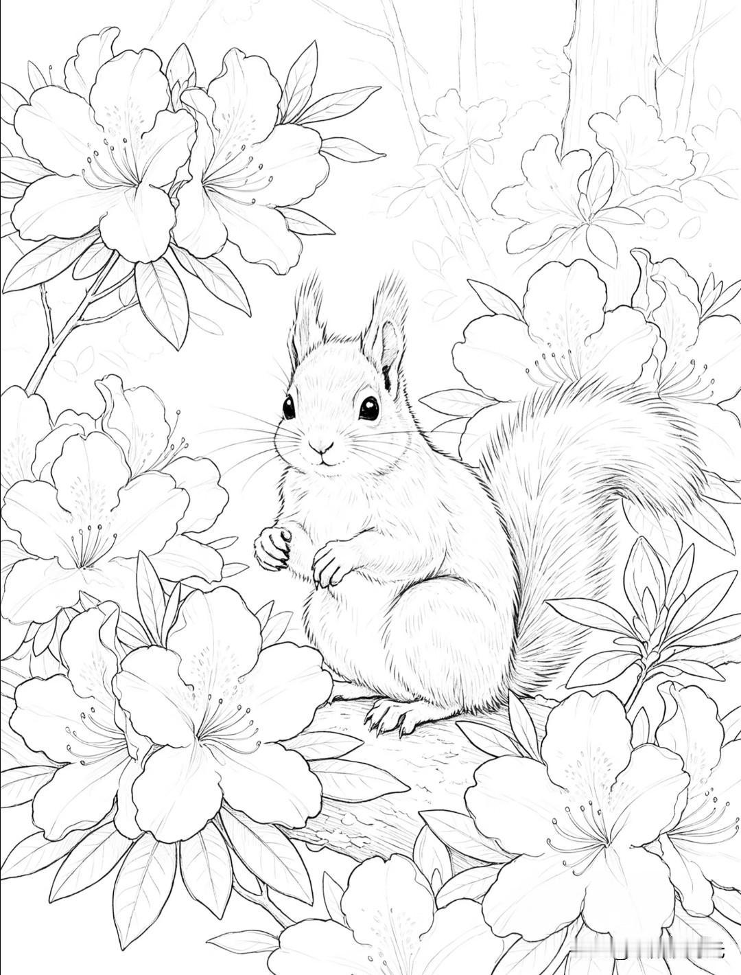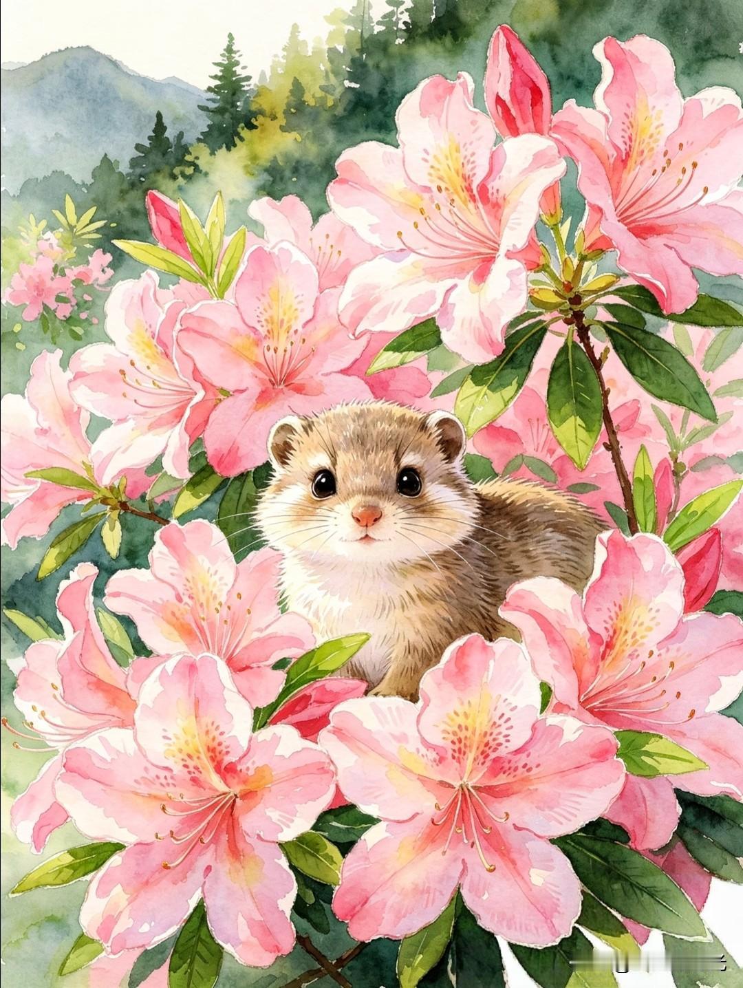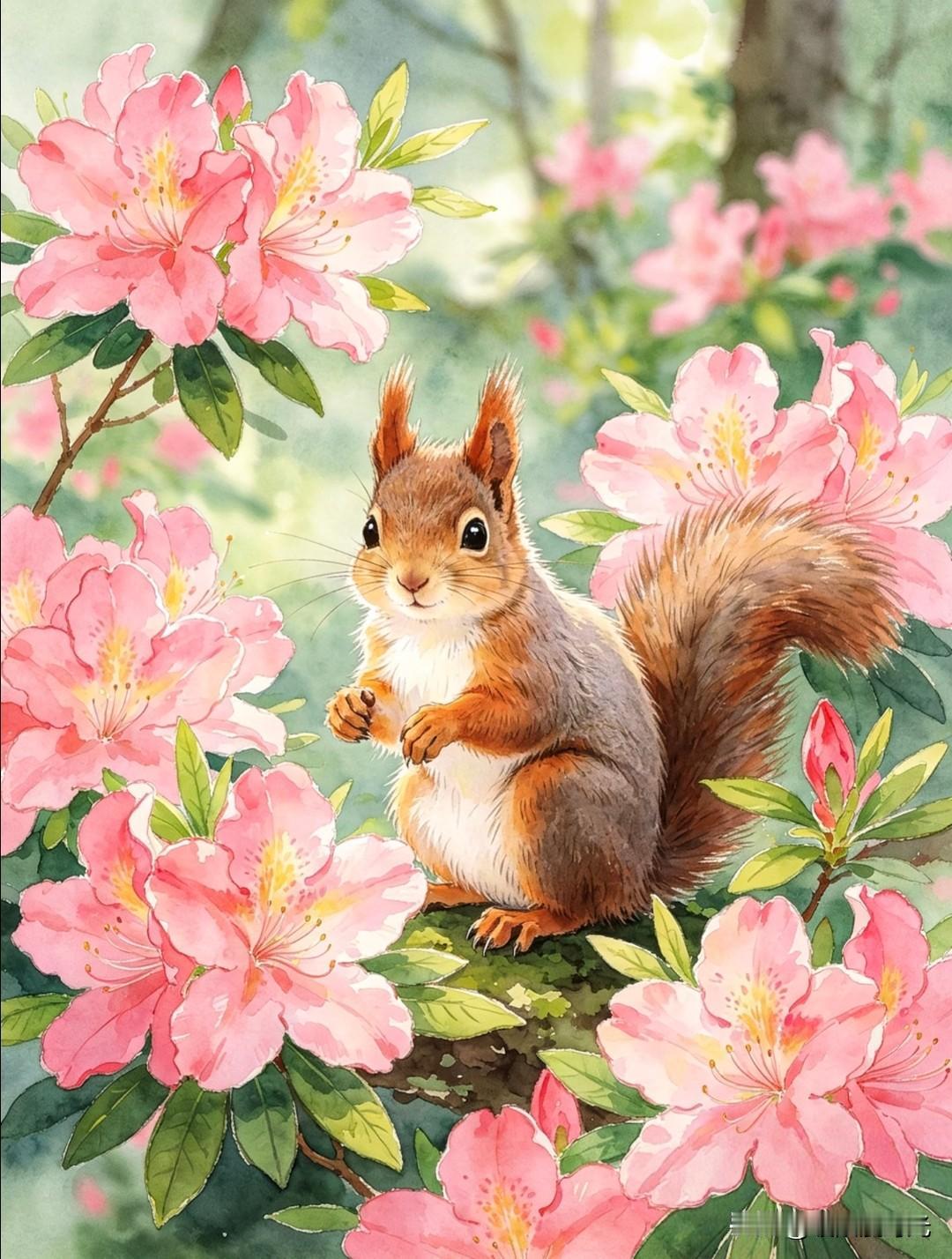 杜鹃绽放,小动物嬉戏,春日里的甜美瞬间。 幸运淇淇绘画素材分享 娇艳杜鹃 植物动物绘画