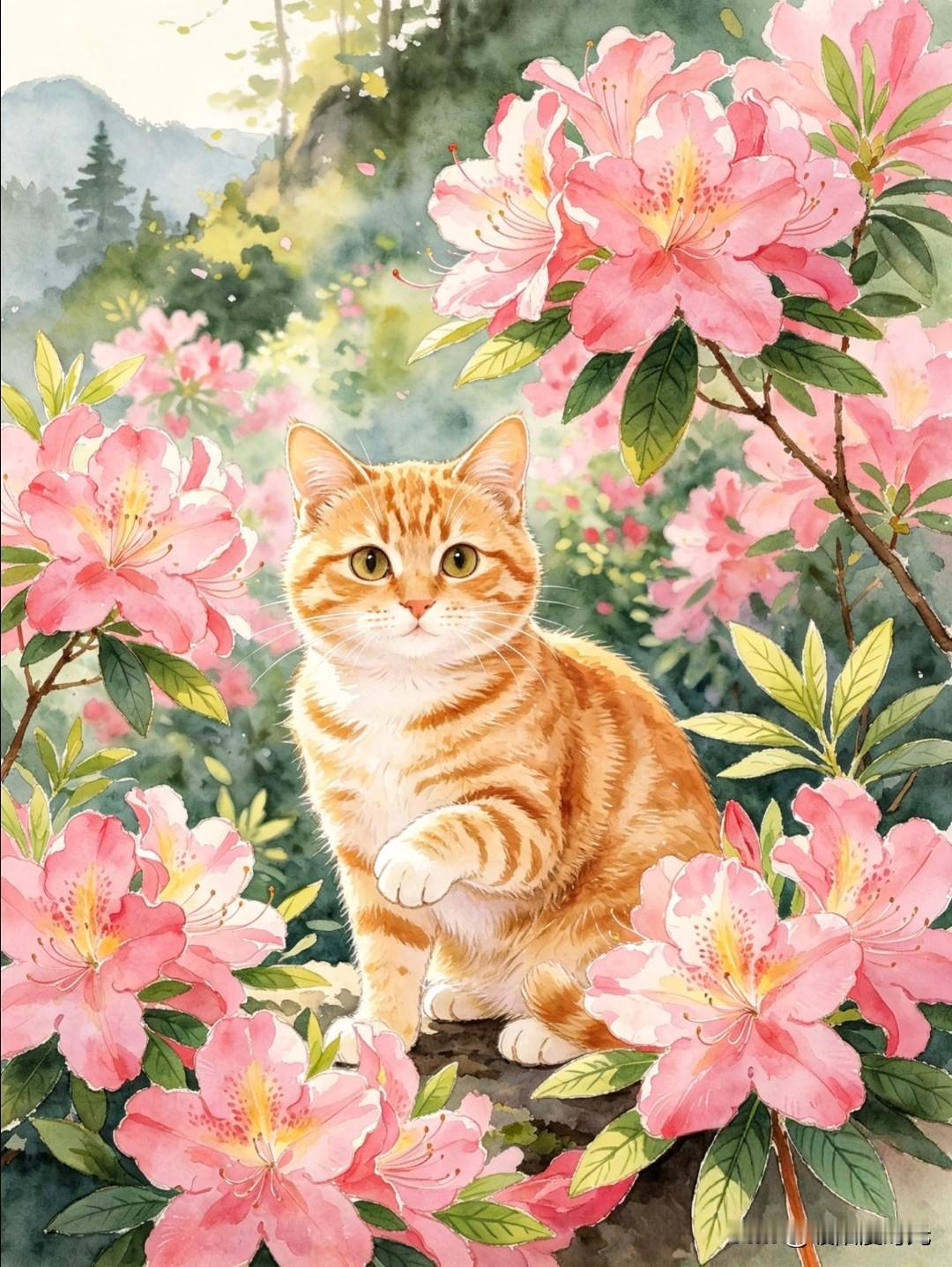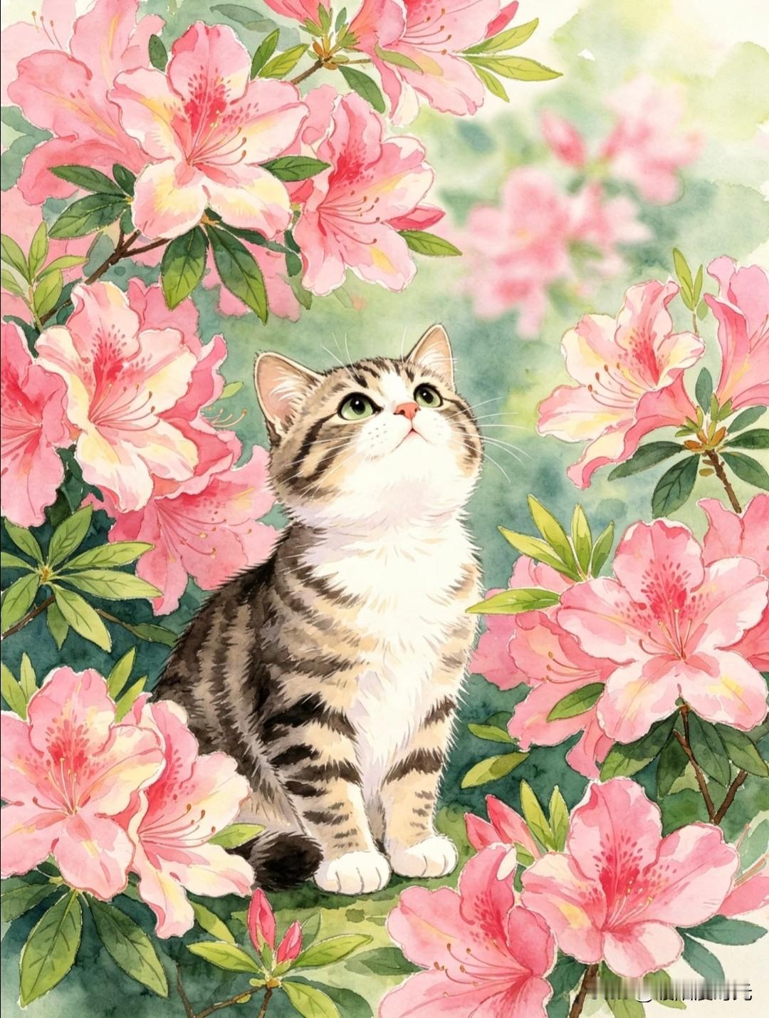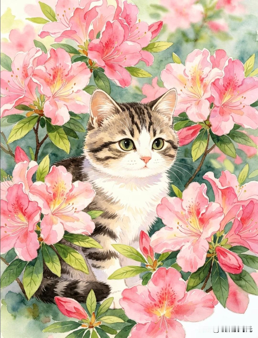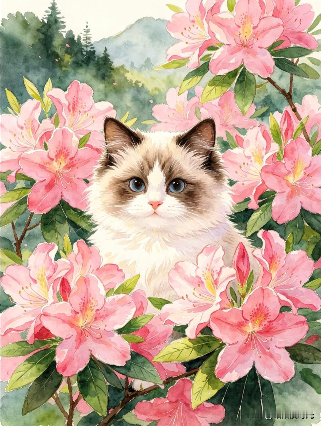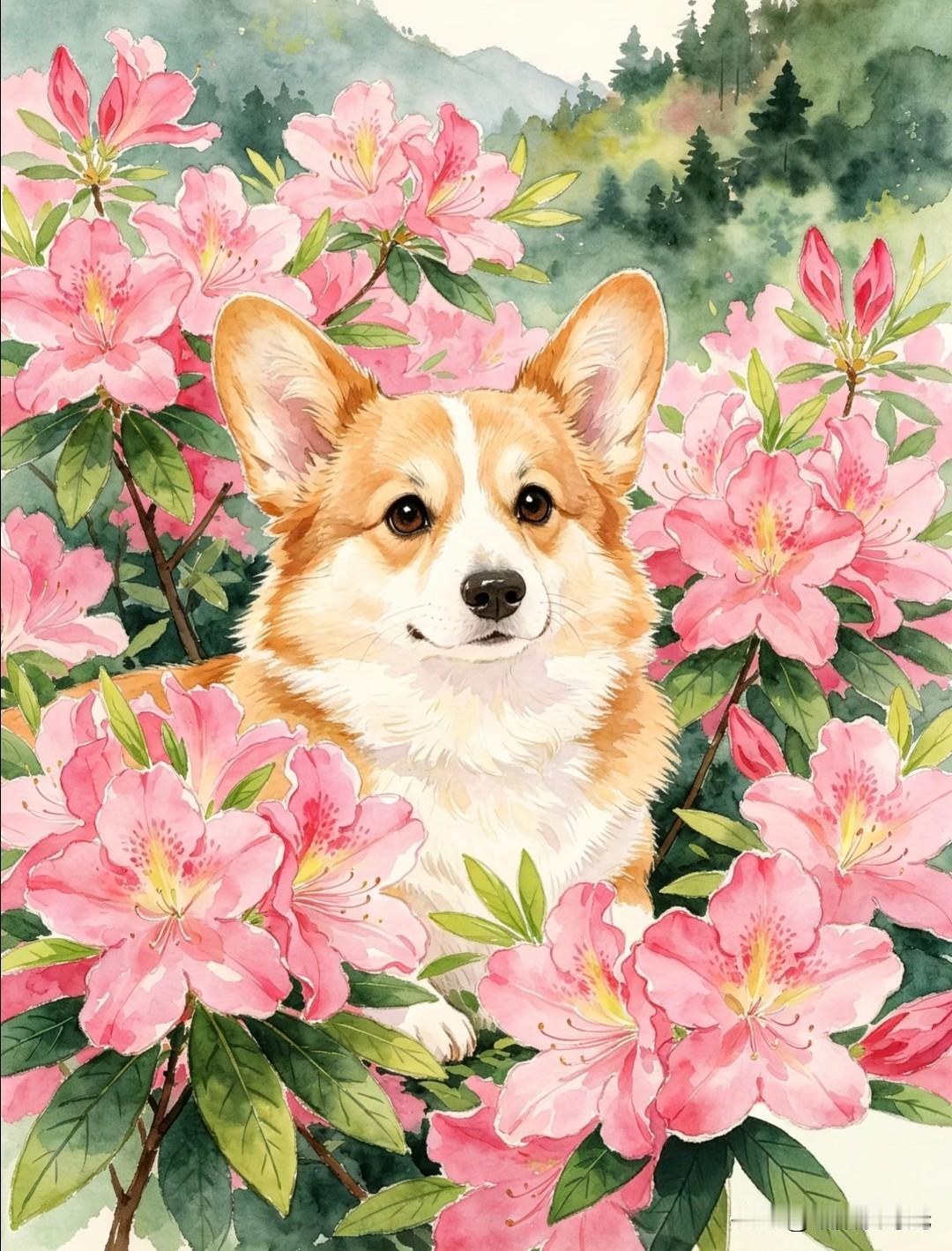杜鹃绽放,小动物嬉戏,春日里的甜美瞬间。 幸运淇淇绘画素材分享 娇艳杜鹃 植物动物绘画