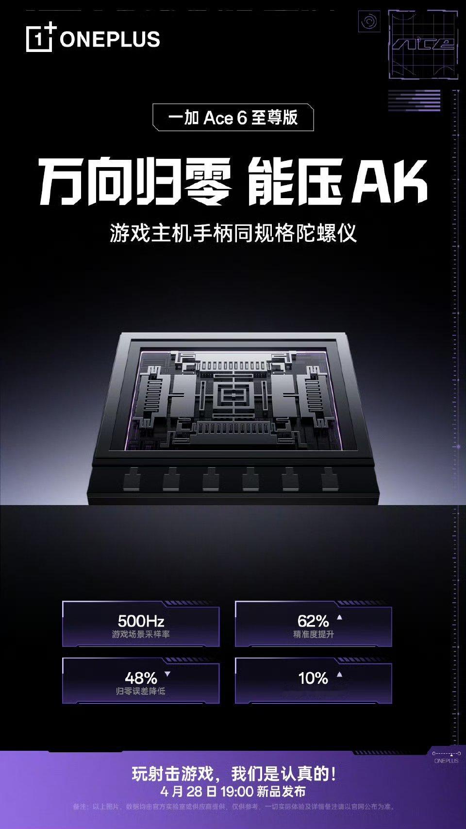 【一加 Ace 6 至尊版手机官宣搭载游戏主机手柄同规格陀螺仪,号称“万向归零,能压 AK”】