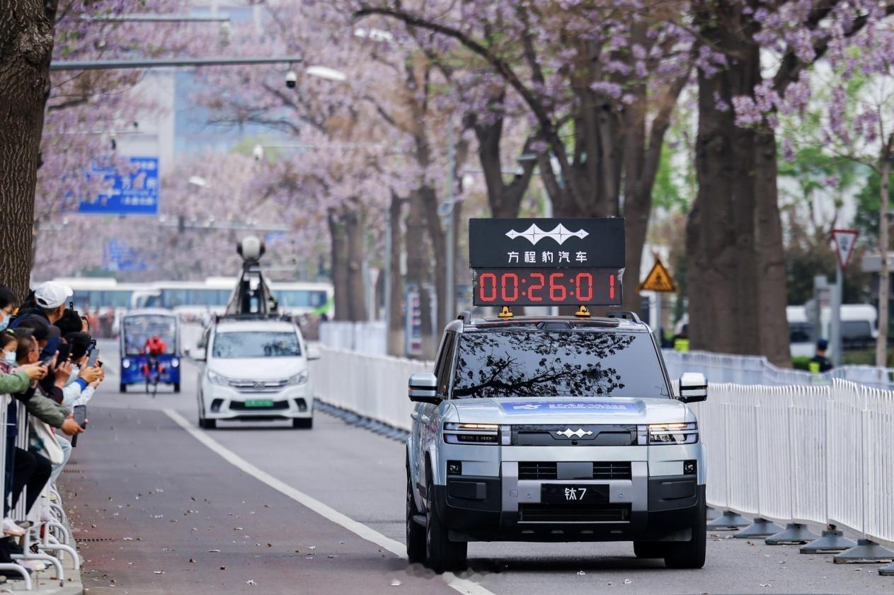 今年机器人跑半马也太快了方程豹汽车护航机器人马拉松
