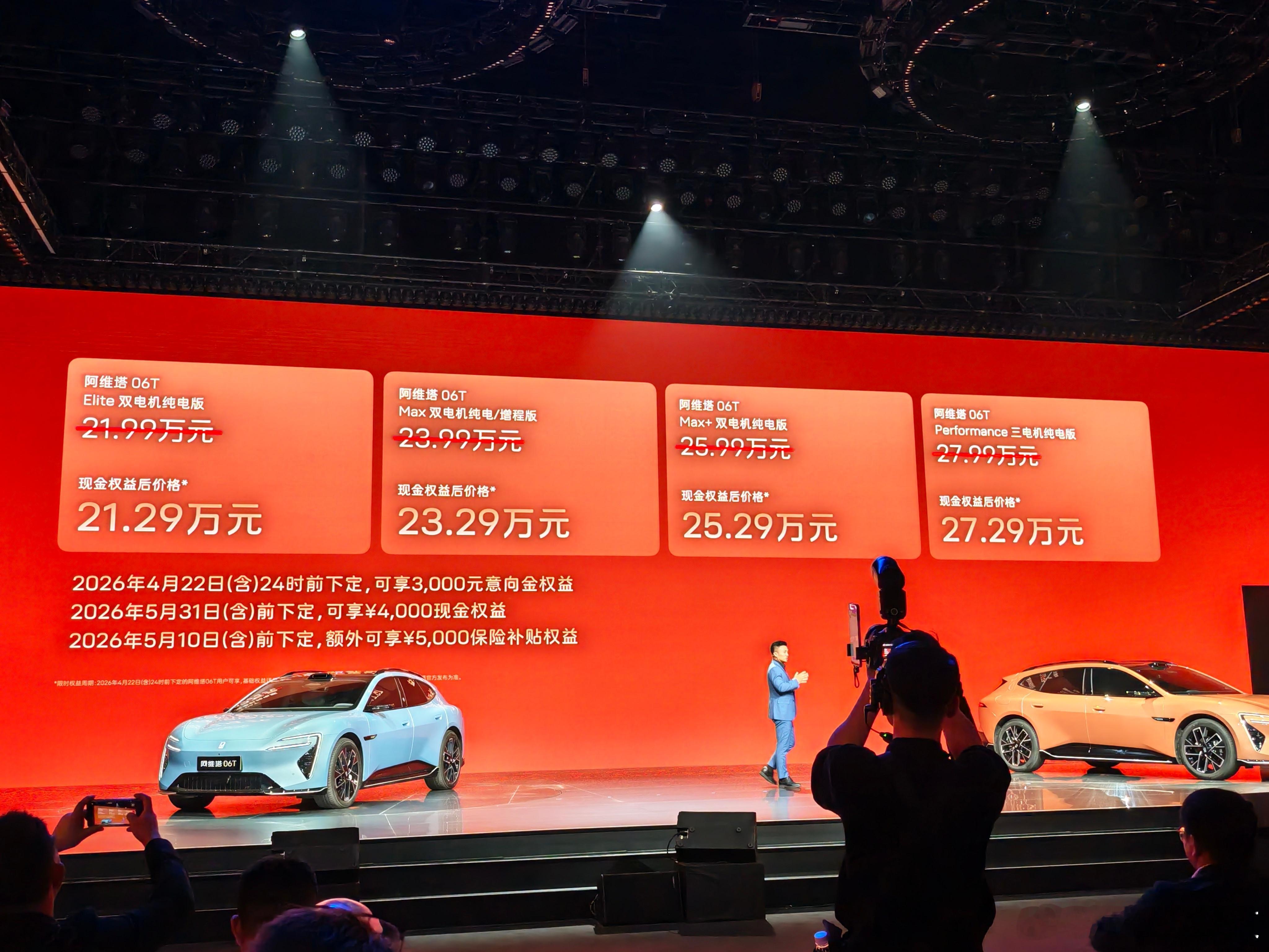 阿维塔06T售21.99万起 4月22日,阿维塔06T正式上市,售价21.99-27.99万元。权益后到手价21.59万起!今日24点前下定,可享3000元意向金权益!