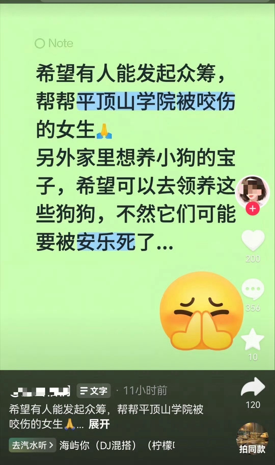 校方回应女生被群狗围堵咬伤20多处希望有人能众筹帮帮那个被咬的女生。希望有人把咬人的流浪狗给领养了。