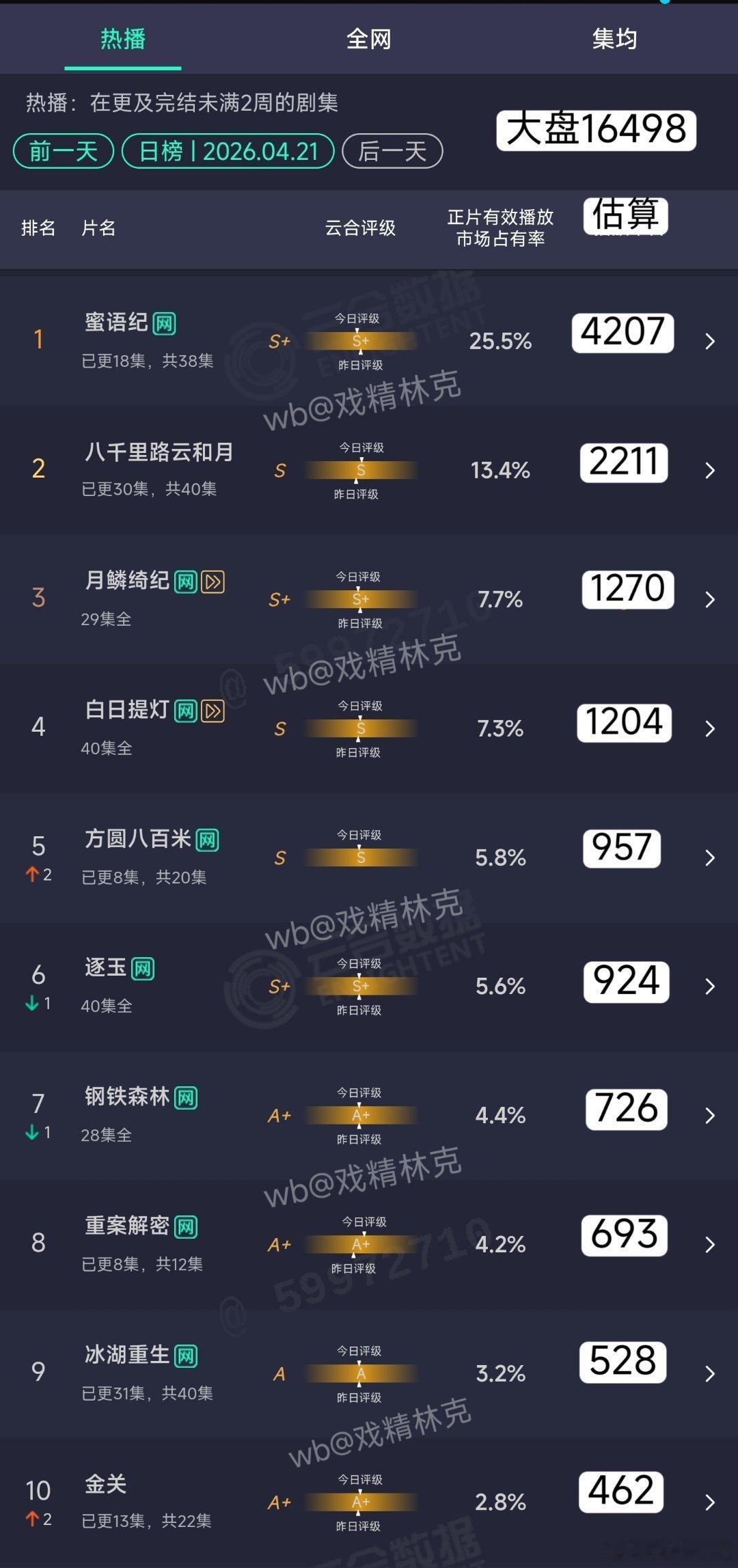 2.26云合:纯真年代的爱情12.9%,首登顶。