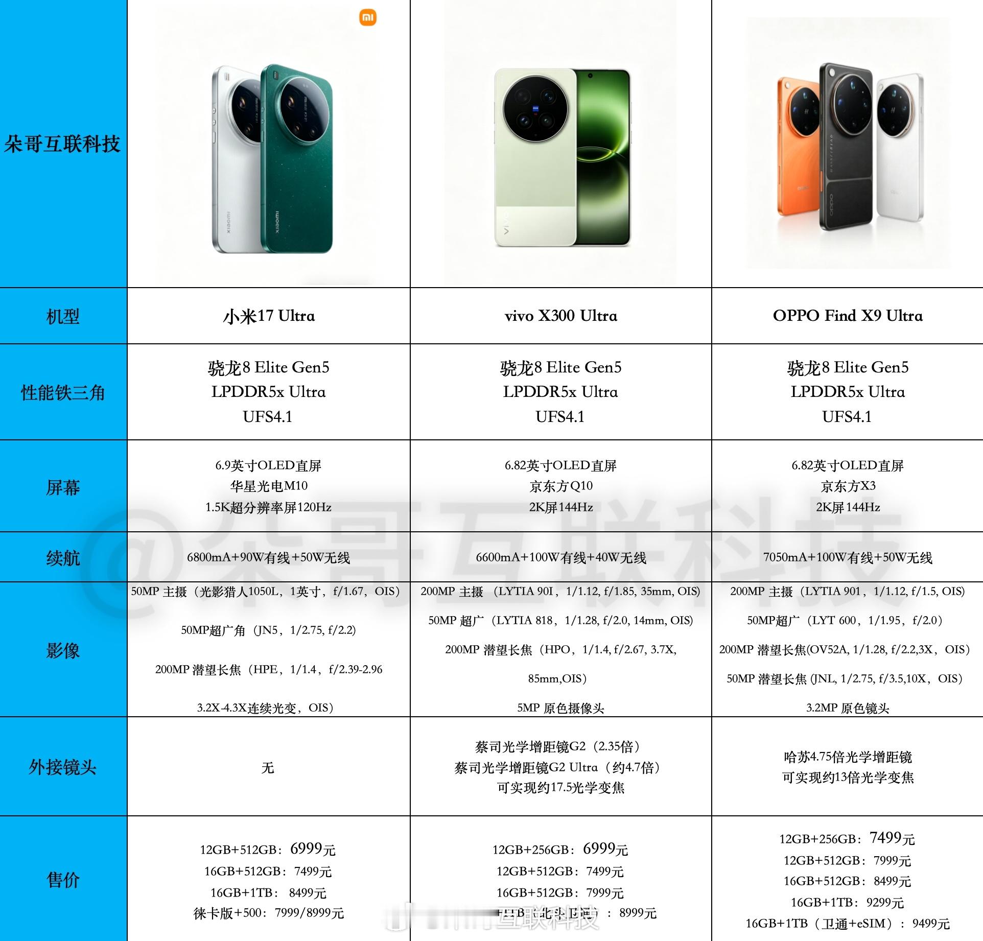 三款影像超大杯配置价格汇总:✅ 小米 17 Ultra主摄+超广角+连续光变长焦的无短板组合侧重日常扫街、夜景、人像,随手拍就稳。✅ vivo X300 Ultra长焦上限高,影像算法讨喜,超广角规格高搭配增距镜,适合追求极致长焦的深度用户✅ OPPO Find X9 Ultra双长焦3.3X中长焦+10X潜望长焦覆盖丰富偏爱哈苏色彩风格,适合日常拍摄场景多元、既拍人像也拍远景的全能用户。所以,你会选哪一台呢?👇