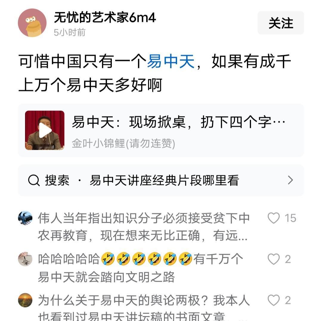 请问大家一个问题,如果美国除掉易中天,是不是等于消灭了中国的未来?打断了中华民族伟大复兴的“七寸”? 美国为什么不呢?连简单的制裁都没有? 难道美国不知道易中天有多么伟大吗?