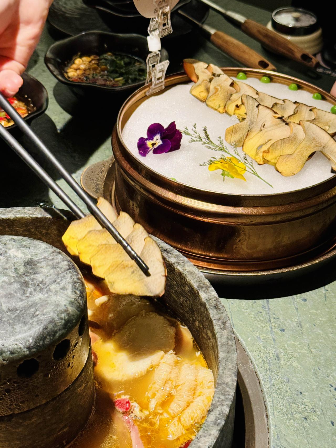 世纪汇这家云南菌子火锅,排队两小时我认了 是的,我又去芸山季了。世纪汇这家,周末饭点人真的多,但吃完只想说:值! 周一晚上赶早,17点到,完全不用排队,直接进。等待煮汤倒是等了15分钟,馋到眼冒金星,但第一口汤喝下去,瞬间觉得这碗汤简直是还魂汤。 林养走地鸡配见手青和山珍四拼,煮开后那个金黄浓稠度,服务员不先盛汤我都要抢碗了——鲜到眉毛飞起来,不是味精能调出来的那种。 见手青是重头戏。服务员卡着计时器,“叮”之前不许动筷子。煮熟后滑嫩脆爽,没见到小人,但那种菌子特有的香气,值了。 其他菜也不拉胯:春叶三味涮肉三种肉都嫩,裹满菌汤入口爆汁;七彩蔬菜拼盘看着就喜欢,全是水灵灵的新鲜时蔬。 创意云南菜也超惊艳:趣·会拉丝的抹茶麻薯冰淇淋,冰冰凉凉还能拉丝,抹茶控必冲!野·香茅炸物拼盘酥脆带着香茅味,一口一个停不下来。趣·黑松露乌云奶茶和趣·紫苏桃桃乐,颜值高且清爽解腻。 总结:这锅汤喝下去的第一口,我就原谅了排队两小时、原谅了加班一礼拜、原谅了全世界。 世纪汇芸山季,不冲真的会后悔。 菌子比肉香,汤比恋爱暖,见手青那口滑嫩脆爽,吃完你只想问:下次什么时候再来? 别犹豫了,这周末就去,相信我,值。 晒出你的本地生活 晒图笔记大赛