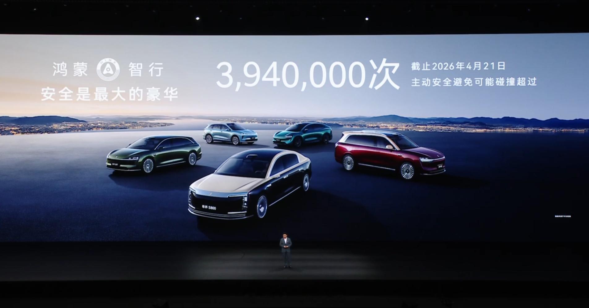 截止 4 月 21 日,主动安全避免可能碰撞超过 3,940,000 次。鸿蒙智行春季新品发布会