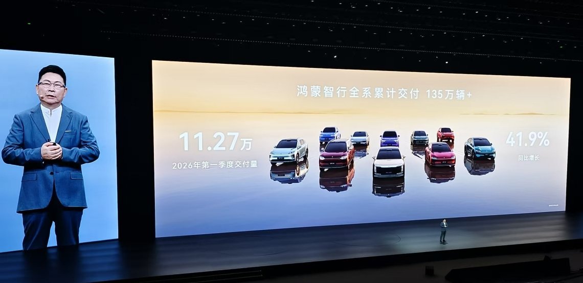 鸿蒙智行到目前交付数据方面,全系累计交付突破135万辆。2026年第一季度交付11.27万辆,同比增长41.9%。