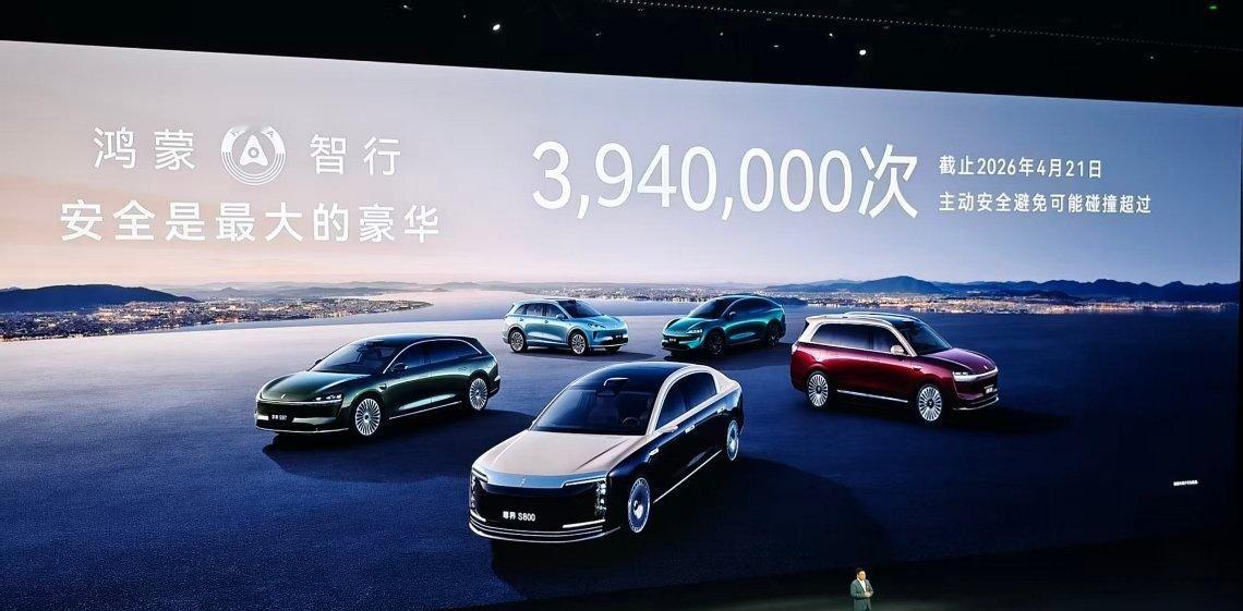 安全层面,华为乾崑智驾累计辅助驾驶里程达102亿公里。截至2026年4月21日,主动安全系统已避免可能碰撞超过394万次。ADS人驾平均安全行驶里程为中国平均值的2.87倍,辅助驾驶状态达4.2倍。