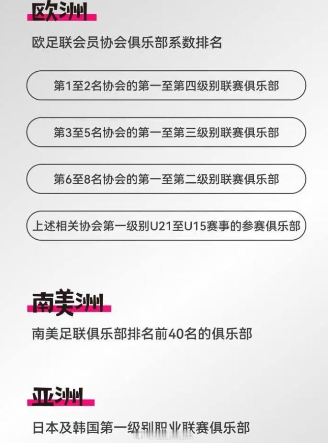 1.去处:欧洲前八协会的联赛、南美TOP40俱乐部、亚洲J1和K1,沙超被无视了