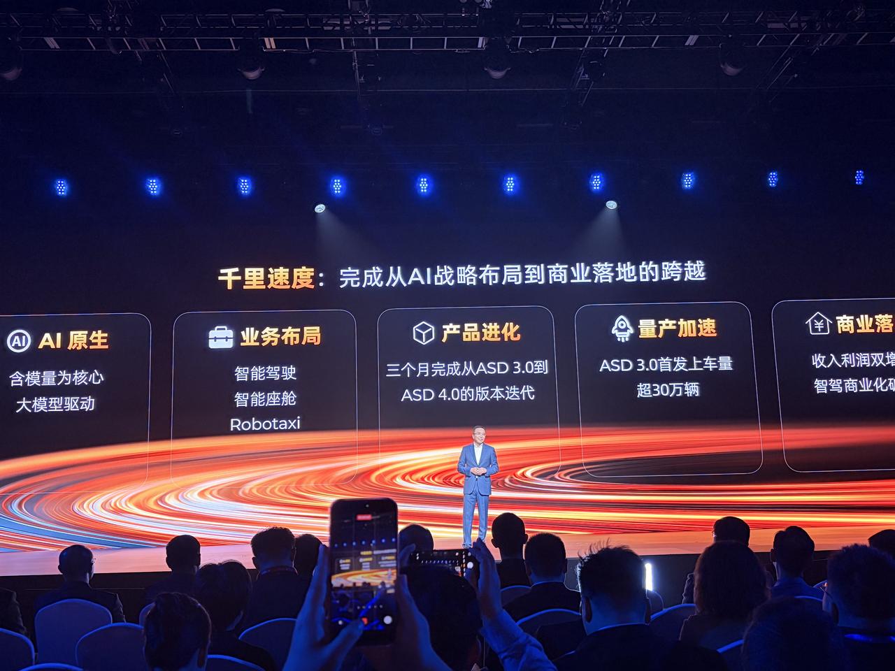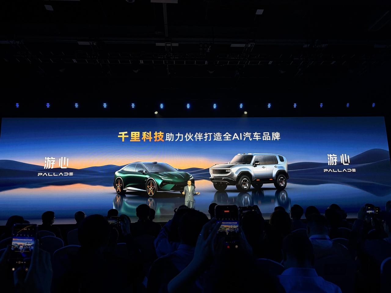 这可能是赵明辞去荣耀CEO之后,第一次以千里科技联席董事长的身份,出现在公开场合。 今天晚上,千里科技举行AI战略发布会。 不过从状态来看,赵明松弛了许多,他还在台上调侃说,车圈比机圈文明太多,还call back了“生死看淡、不服来战”! 言归正传,截至目前,千里科技公布了三件大事: 第一是推出全新的汽车品牌:游心pallade,并带来了一款轿车与SUV,但具体上市时间还未公布 第二件事是2027年,千里科技将推出Robotaxi综合解决方案。 第三件事超级智能体和千里智驾ASD4.0已在极氪8X上首发上车 原本以为这场发布会是像地平线那样的科技公司秀肌肉大会,结果没想到,千里科技直接下场造车,秀技术的同时还秀出了新品牌和新产品,也难怪赵明加入了千里科技,毕竟做产品,赵明还是有点东西的。