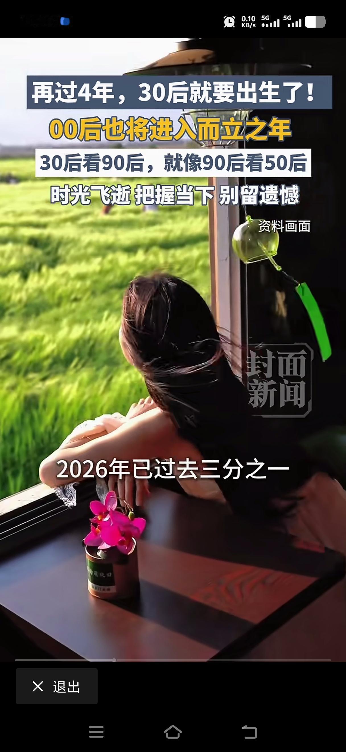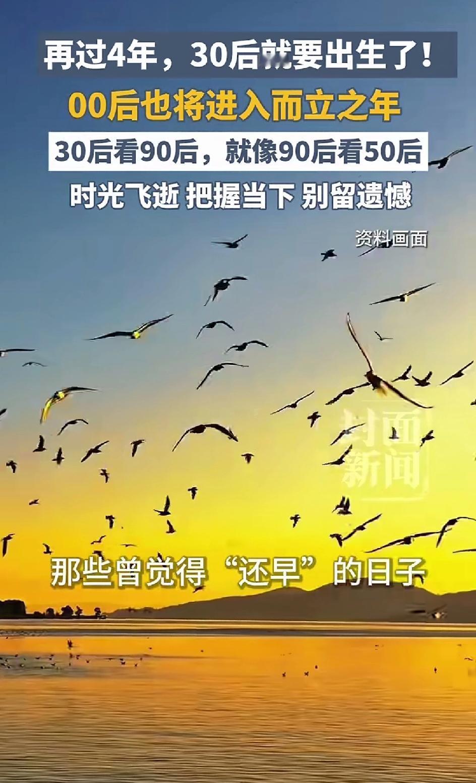 再过四年,三零后就要出生了,九零后已经奔四,零零后即将到而立之年。八零后步入中年,突然感觉时间像坐上了火箭。二零二六年也过去了三分之一,人生,这趟单程线,越走越往终点,再也回不去小时候,再也回不去青春,再远也回不去曾经。说一路上珍惜陪伴你的人。不要虚度时光,不要须臾哀叹。时光飞逝,把握当下,别留遗憾。好好生活,好好爱。
