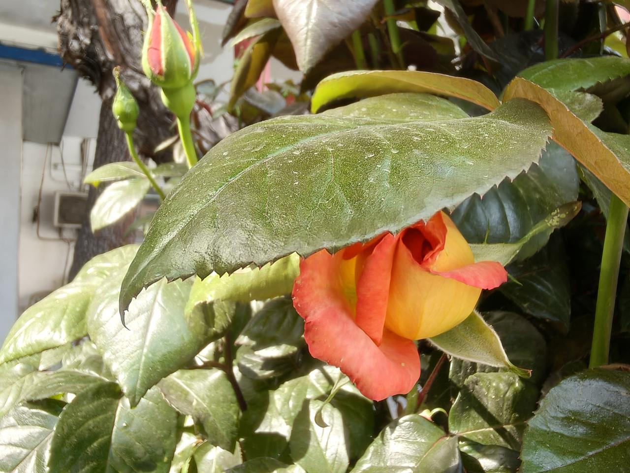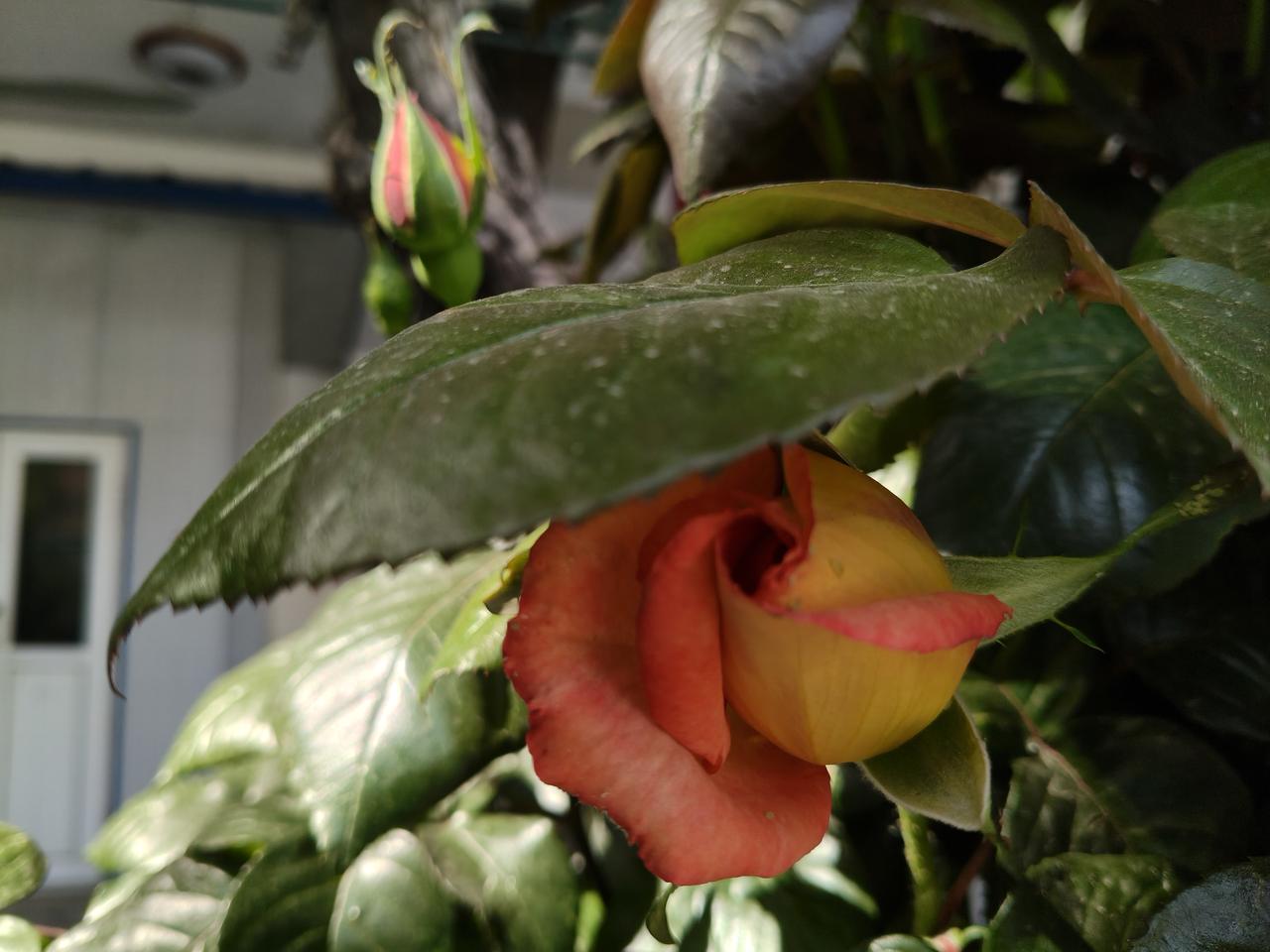 向阳花木早逢春,千真万确! 丰台院内的一株月季花,在大树的荫影中透过一抹阳光,每天,仅在三点左右,在夹缝中享受着日光的短暂的恩惠! 可恰恰在这短短的光照,向阳的花蕾躲在树叶下,来了一羞答答的玫瑰,静悄悄地开! 果然是向阳花朵早盛开!淡粉色月季花 淡粉色的月季