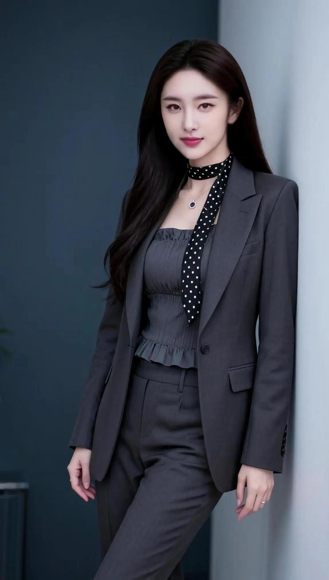 职场女神风范,黑色西装搭配白衬衫,自信满满!💼✨
