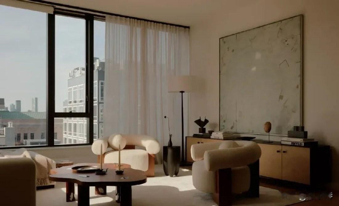 纽约公寓改造。 在这次纽约公寓改造中,设计师巧妙地将业主深厚的伊朗文化背景与经典中古美学融合在一起,打造出了一个独具魅力的居住空间。 走进公寓,首先映入眼帘的是客厅。地面铺设着带有伊朗传统几何图案的地毯,那些复杂而精美的花纹仿佛在诉说着古老波斯的故事。 墙壁上挂着几幅复古的波斯细密画,细腻的笔触和鲜艳的色彩,展现出伊朗艺术的独特魅力。而客厅的家具则采用了经典中古风格,线条简洁流畅的沙发搭配着复古的茶几,给人一种沉稳而优雅的感觉。