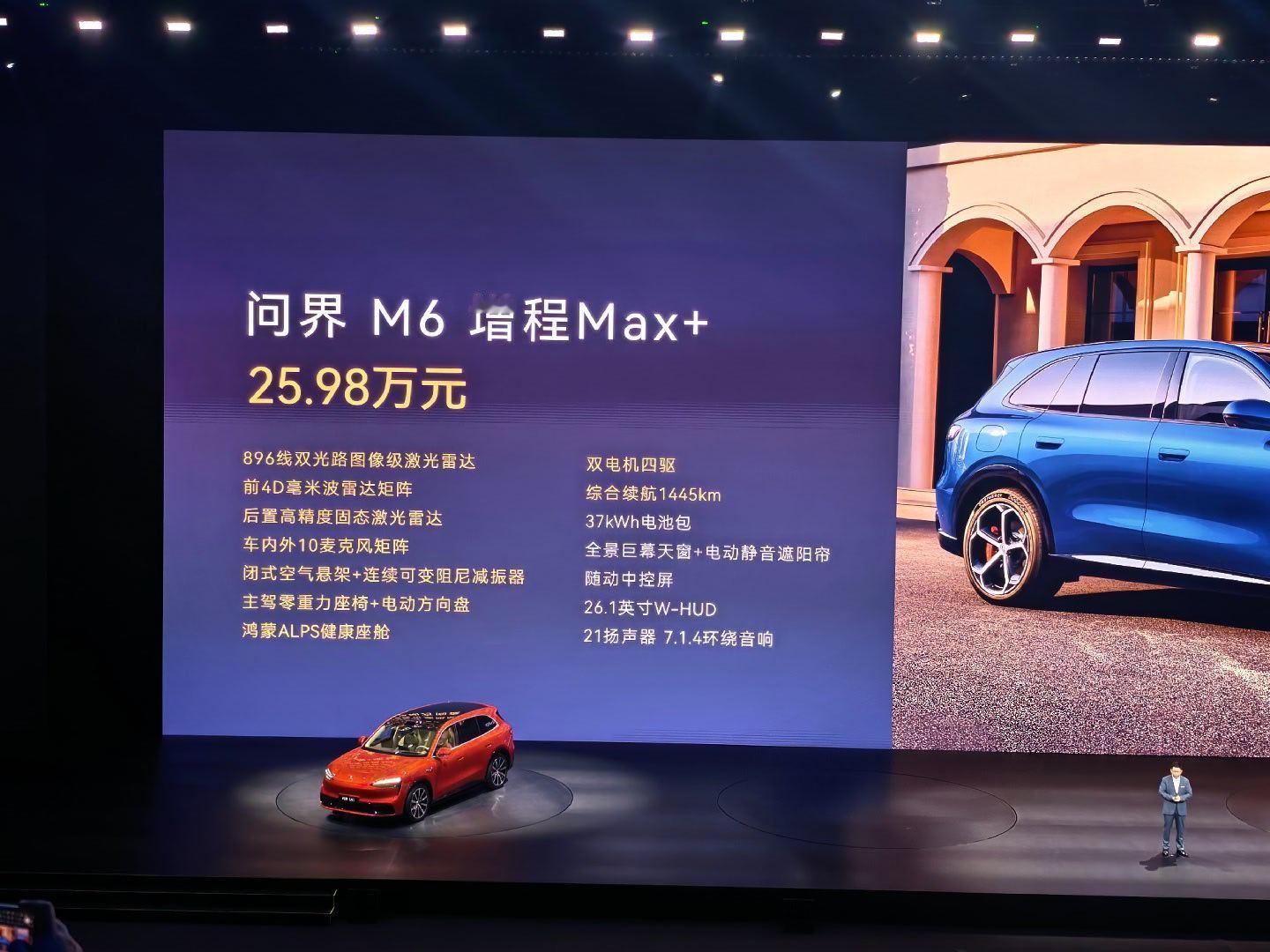鸿蒙智行发布会问界M6价格:增程Max+ 25.98万元增程Ultra 27.98万元纯电Max+ 27.98万元纯电Ultra 29.98万元鸿蒙智行车主增换购都能优惠1万元