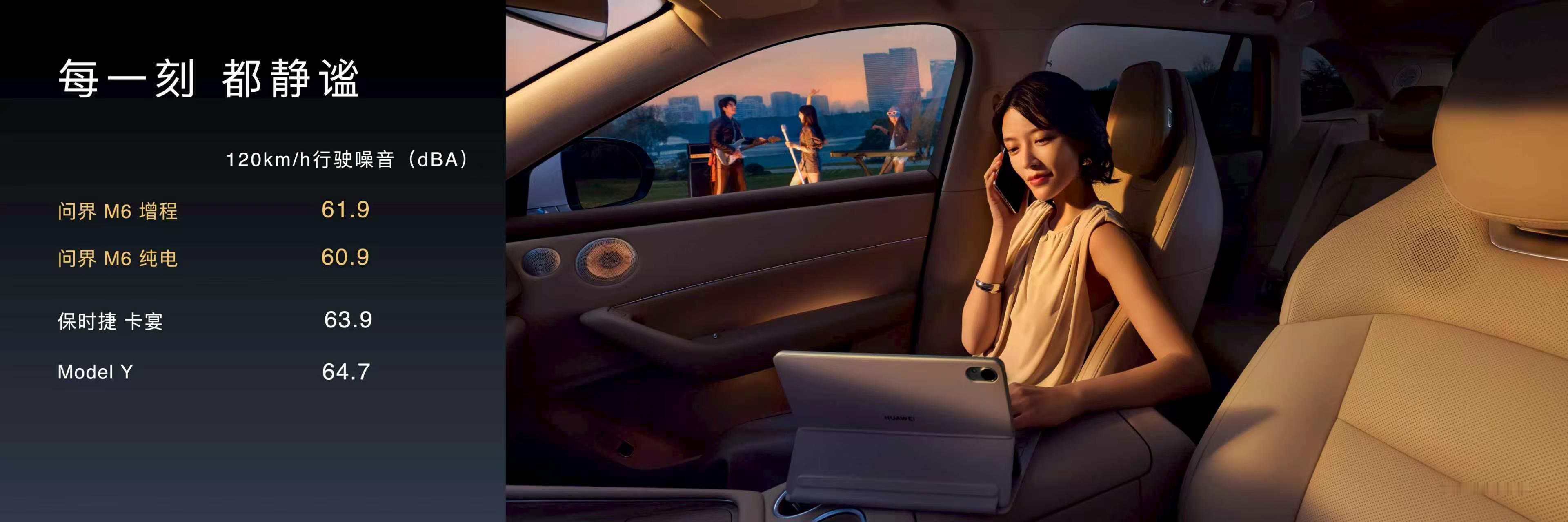 鸿蒙智行发布会问界M6的NVH,官方公布的数据是120km/h 的 分贝是 61.9dB,这和我们当时在车里测得的几乎一致。因为我们用的手机互联的车机,调用的 Pura 80 Ultra 上的噪音测试应用,测的过程,它是调用的车内 mic,说实话,挺准的。