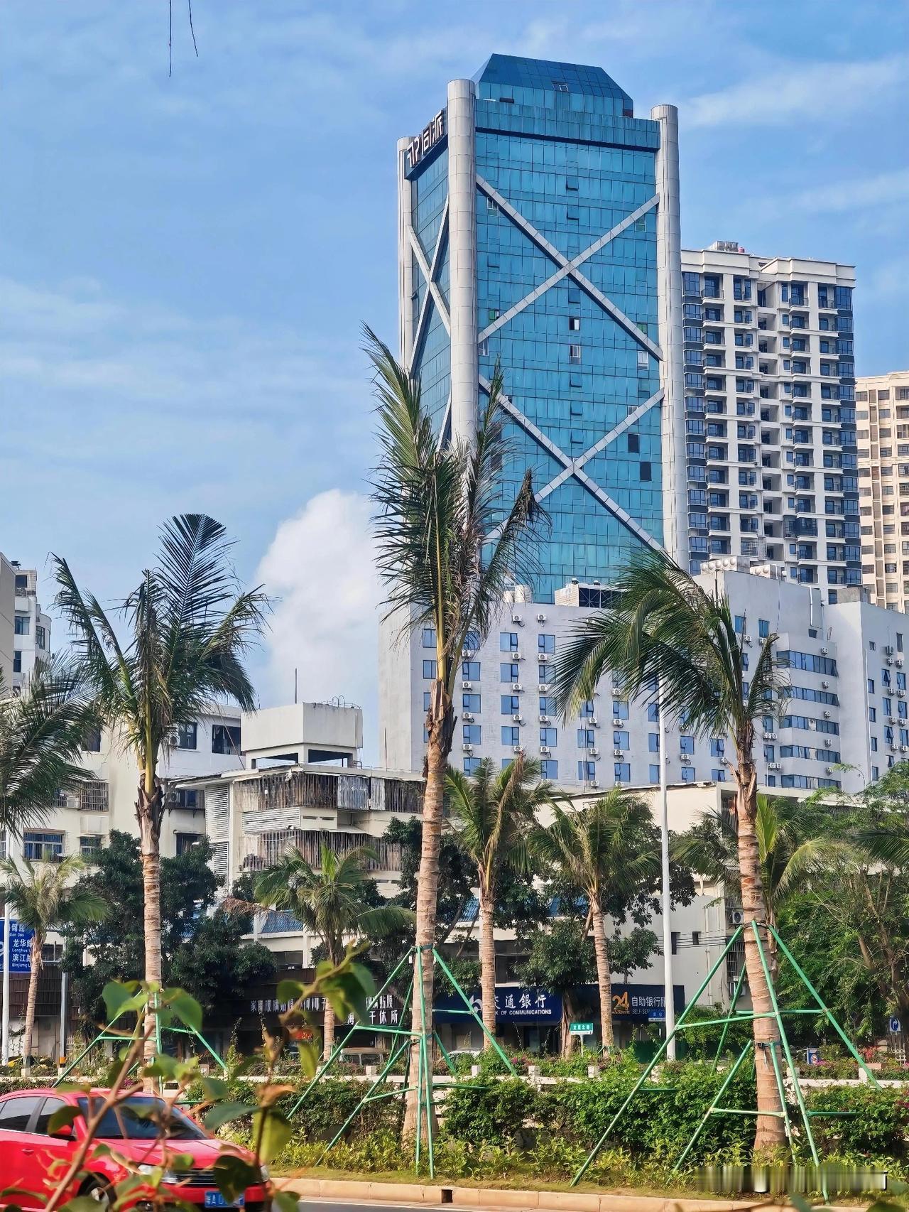滨海大道立交桥龙昆北路口的这座外墙四面全蓝玻笔直方正高达百米的大楼,应该很有些年头和故事吧。 它的附楼海景湾大酒店曾经是四星酒店,经营了9年。这座大厦整体给人感觉一直是很低调的存在,不温不火的。但你不得不承认它在滨海大道的众多高楼大厦中仍然是地标的风范,三十年过去了至今看起来还是那么时尚。
