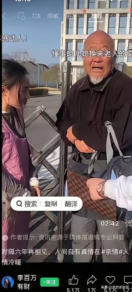 一个年近70岁的公公,千里迢迢从安徽来到广东看望儿媳妇,他们6年没有见面了,老公公太想儿媳妇和孙子了,就一个人跑到广东来。 这是怎样的一份情谊?整整六年,两千多个日夜,这老爷子把思念压在心里,硬是靠自己这把老骨头,跨过千山万水来了。有人说公公和儿媳妇要保持距离,那是没经历过真正的一家人。血缘不是维系亲情的唯一纽带,人心才是。 老人家多半不爱给子女添麻烦,怕影响小两口工作,怕自己成了累赘。可这次他偏不,想孙子想得睡不着,想儿媳妇做的那口饭,干脆就买了票出发。这份“不请自来”的任性,恰恰是最深沉的爱。因为他知道,若等儿女开口请,怕是等到头发全白也等不来。 到了广东,老爷子大包小包拎着老家特产,那里面装的哪是咸货和炒米,那是老家的味道,是爷爷沉甸甸的心。六年没见,孙子肯定长高了不少,儿媳妇或许也添了几根白发。见面那一刻,不需要什么客套话,一句“爸,您来了”,就足以让一路的疲惫烟消云散。 这一面,补上了六年缺失的陪伴。生活中的柴米油盐确实磨人,年轻人在外打拼,常常顾不上回头看看。可老人心里那杆秤清楚得很:儿子忙,他不怪;儿媳妇操持这个家,他心疼。这次跨越千里的探望,是把家庭关系的主动权握在了自己手里。 别总是等到“树欲静而风不止”才后悔。年近古稀,余生还能见几次?这位公公活得通透,他想见的人,哪怕隔着千山万水也要去见。这样的举动,扇了多少“等以后有空”的耳光。孝顺不是等来的,亲情是走出来的。 这个家庭的故事之所以戳中泪点,是因为它触及了现代人最脆弱的神经——为了生活四处奔波,亲人被迫分离。安徽到广东,一千多公里,对年轻人只是一张高铁票,对老人却是一场体力和勇气的考验。 这一面,也给了儿媳妇最大的尊重。公公有话不憋着,有事不藏着,直接把关爱送到家门口。这种直接的、毫无隔阂的表达,比任何转账红包都暖人心窝。家庭关系中最怕的就是生分,一旦有了距离感,再亲的人也会变得陌生。 看着大包小包的特产,看着老人风尘仆仆的样子,哪个做儿媳妇的能不心软?这六年的距离,在这一刻被彻底拉近。亲情这东西,哪怕隔得再远、时间再久,只要心里装着,一通电话、一次见面,就能瞬间点燃。 愿天下所有的老人都能有这份行动力,更愿天下所有的儿女都能让老人省了这份心。各位读者你们怎么看?欢迎在评论区讨论。