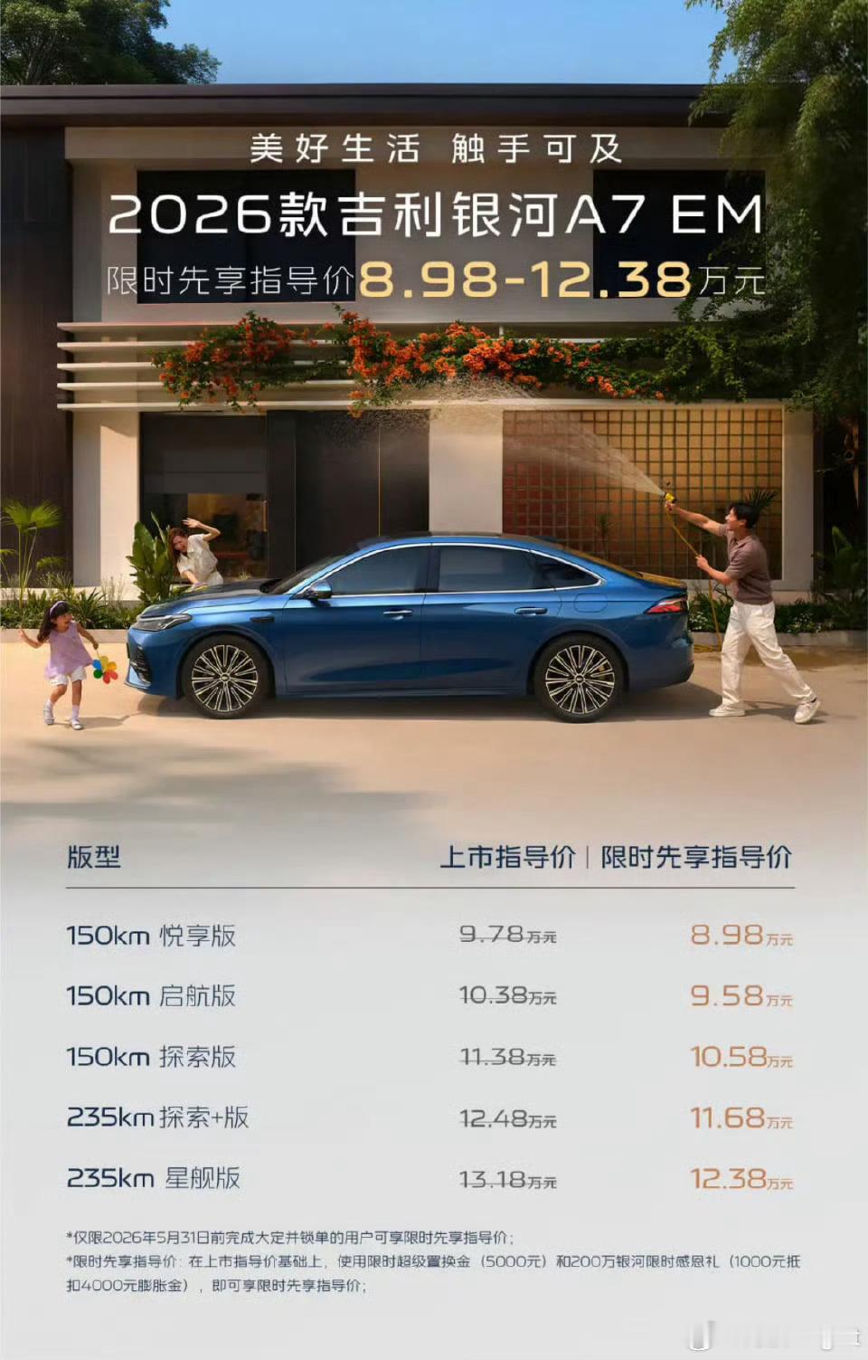 银河A7EV纯电版,10.28万-10.98万银河A7EM插混版,8.98万-12.38万