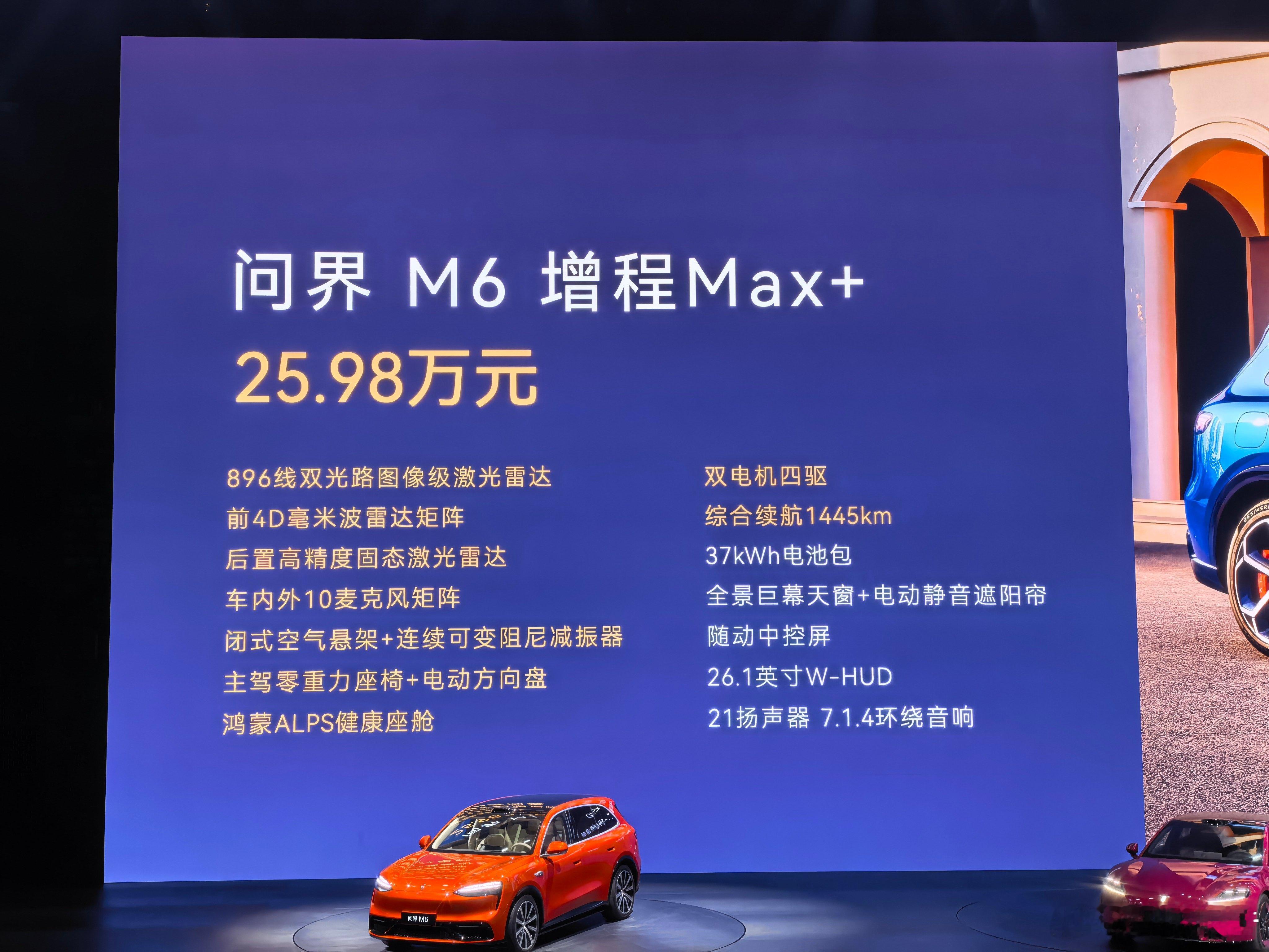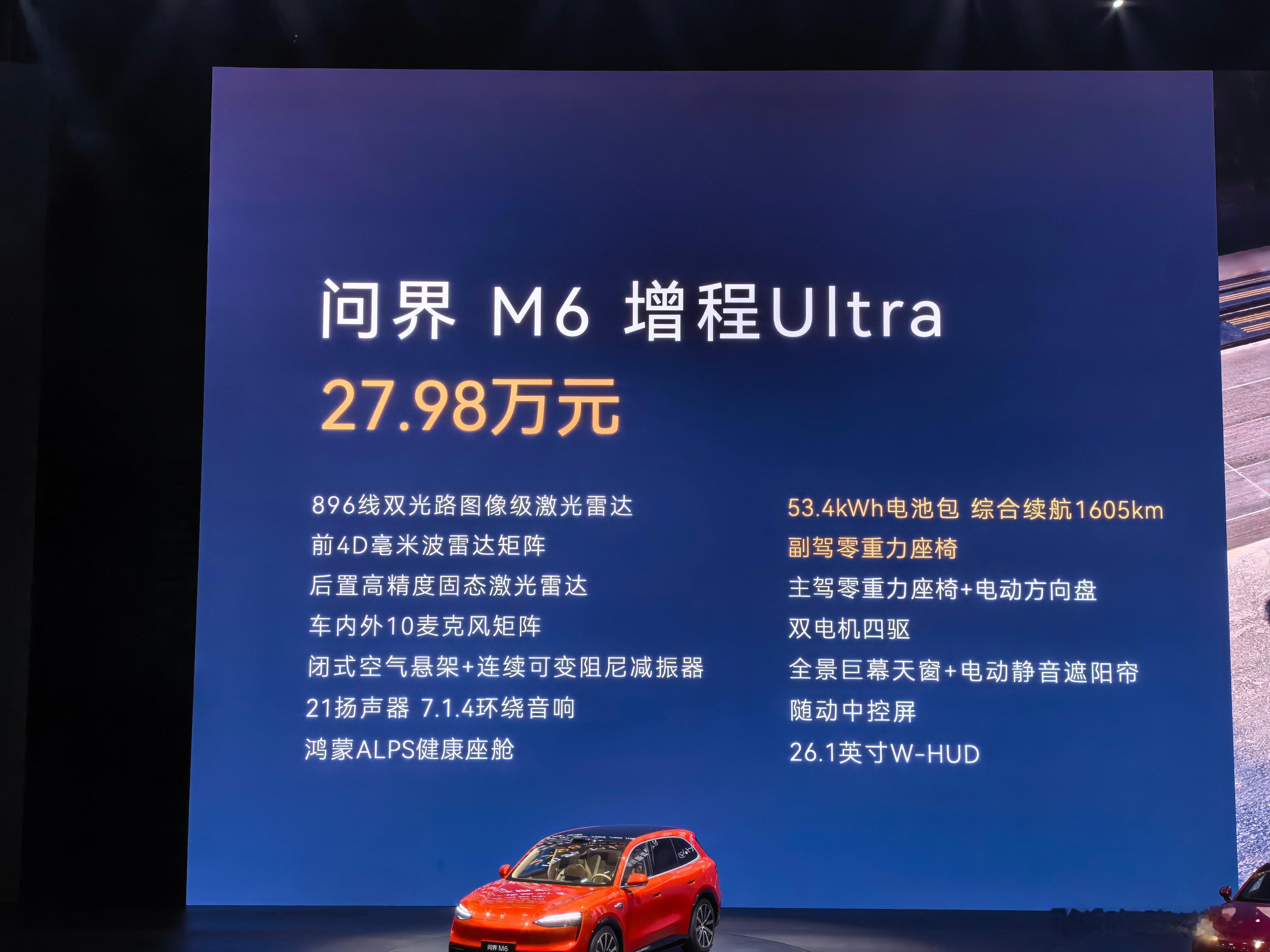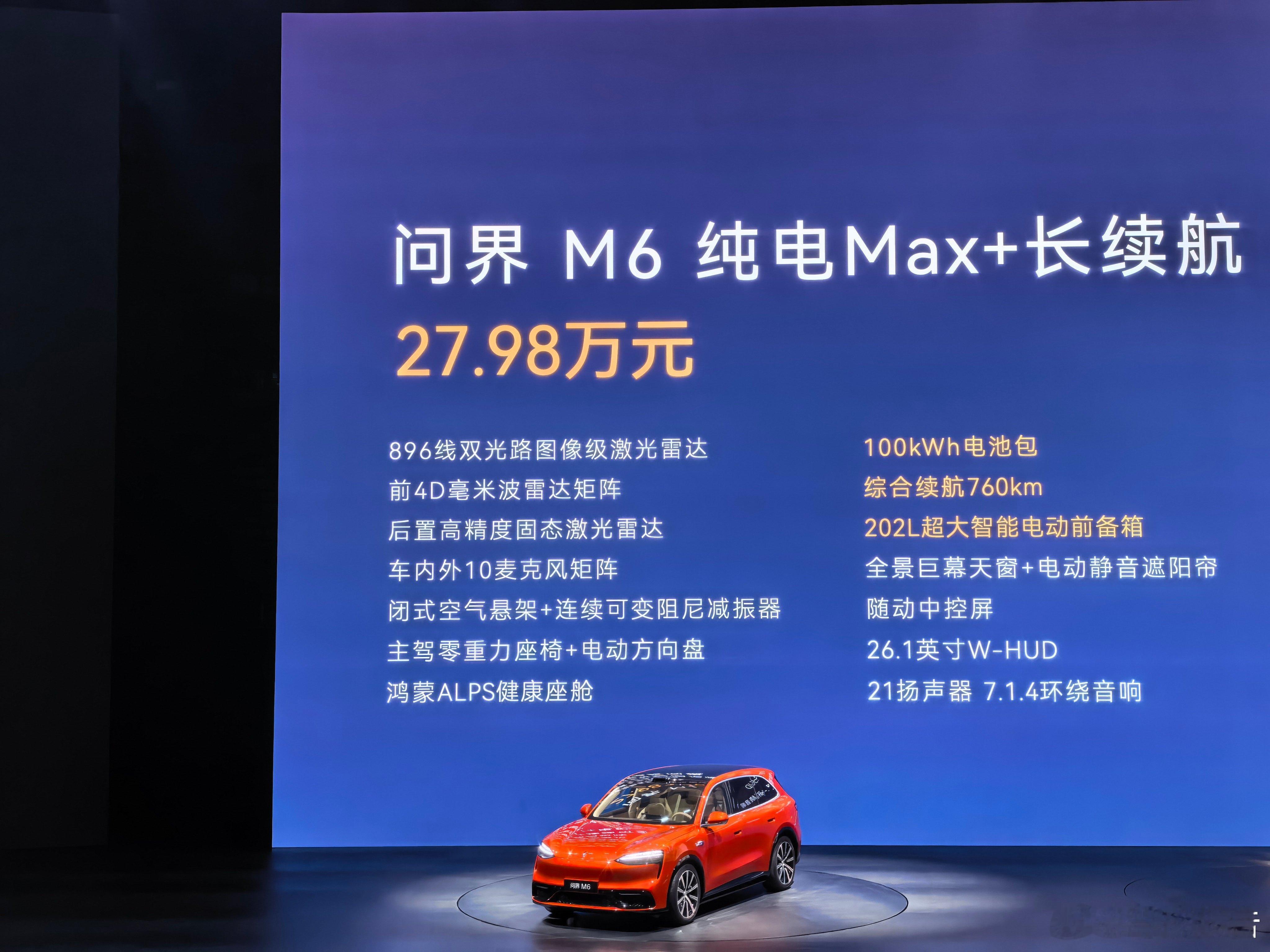 问界M6增程版起售价25.98万元,纯电版本起售价27.98万元,虽然相较于预售价来说有点落差,但是看看购车政策,这波力度其实也还好,挺不错的鸿蒙智行发布会鸿蒙智行春季新品发布会问界m6