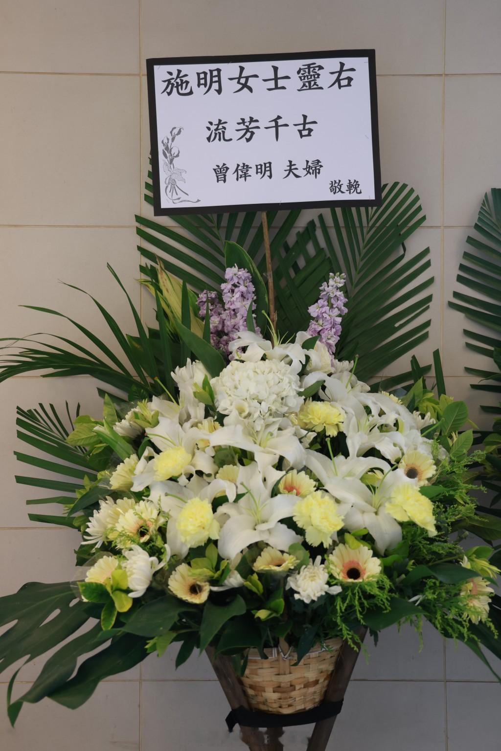 场内可见演艺人协会及古天乐送上的花圈,其他致送花圈的艺人及单位包括庞郭秀云、杨明与女友庄思明、电视广播有限公司、谭玉瑛、吕良伟等。