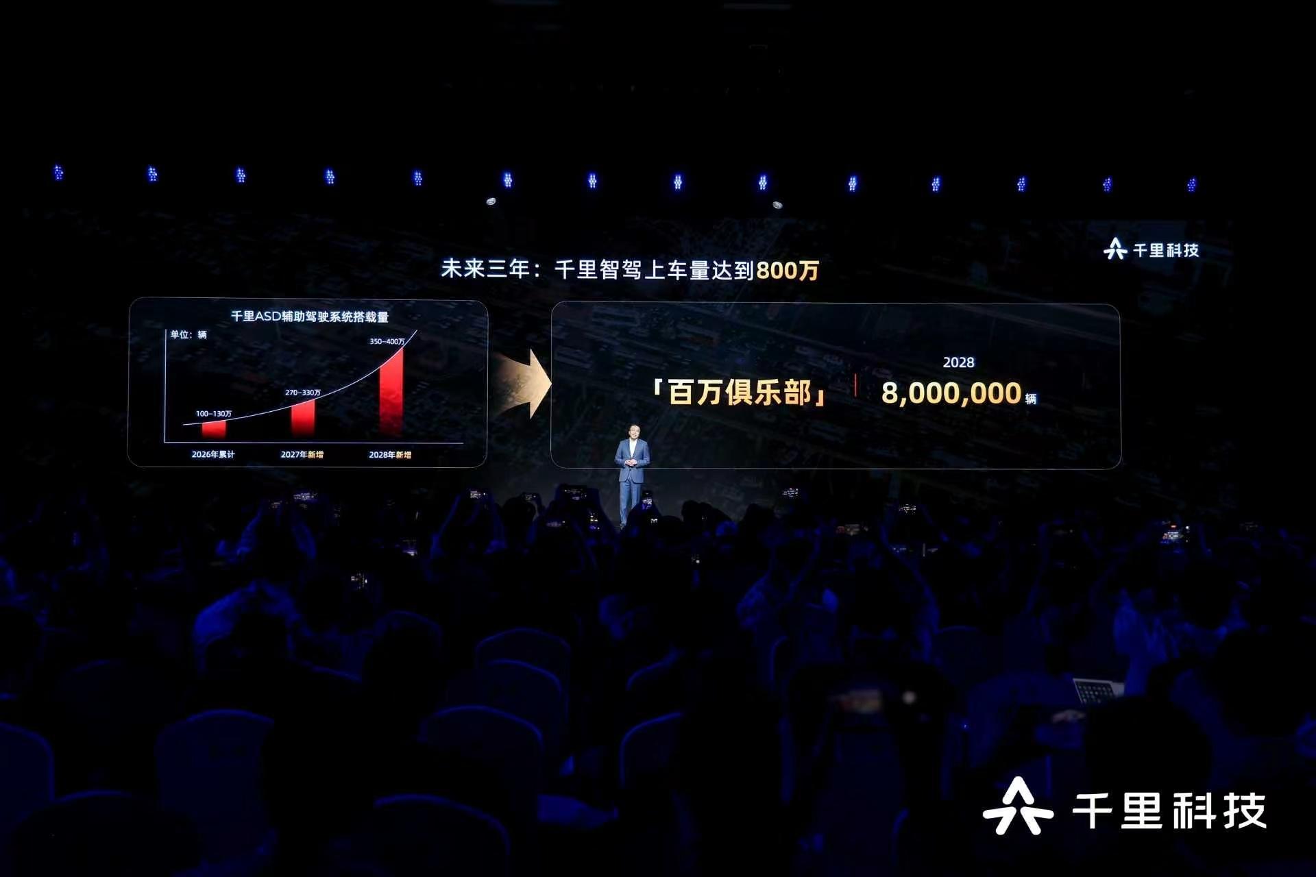 千里智驾未来三年上车量挑战达到800万。千里科技上车800万什么概念智驾决赛千里速度智启北京车展千里AI相伴
