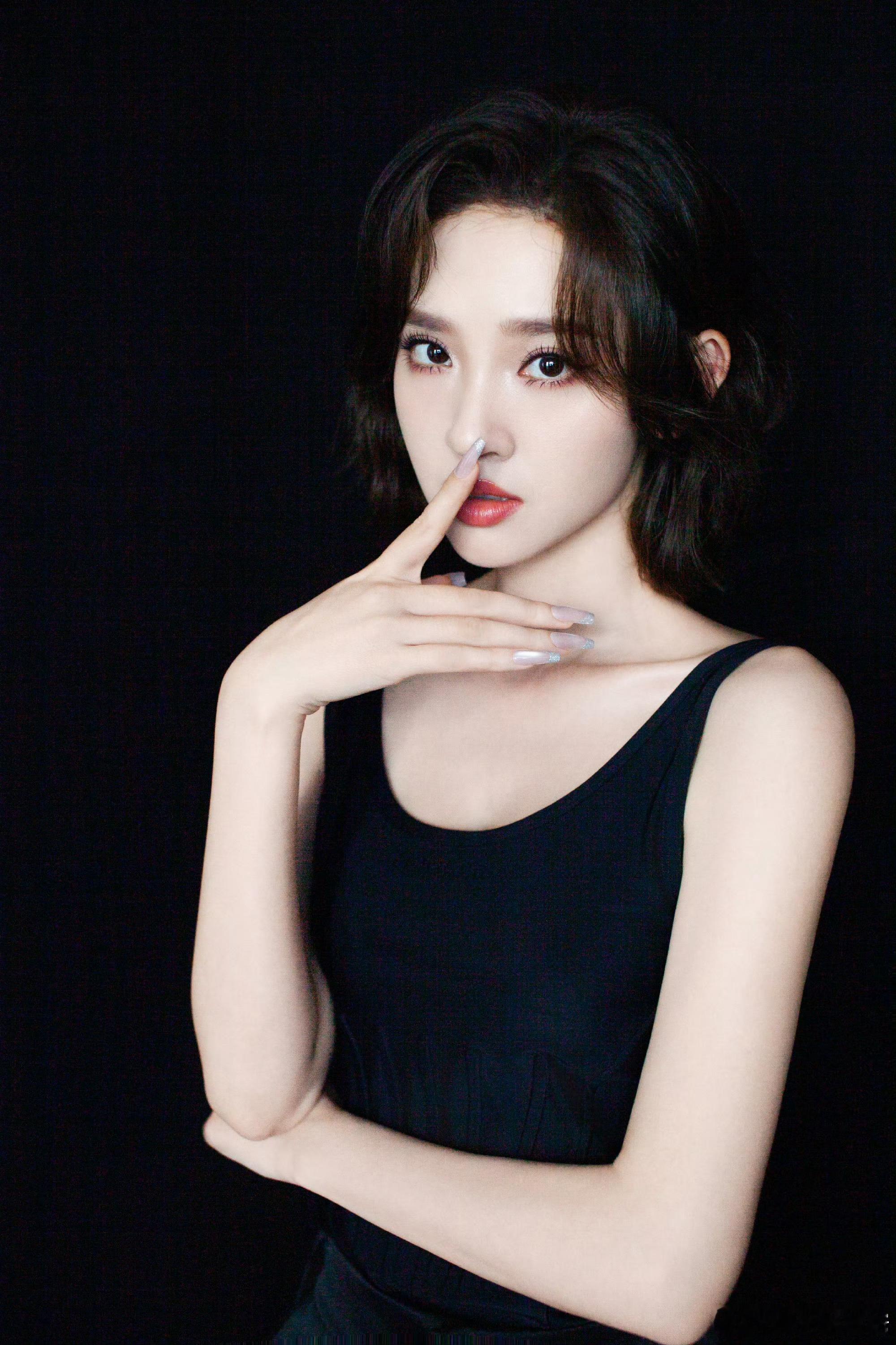 宋祖儿红唇大波浪宋祖儿第二套港风红裙 宋祖儿的脸 女娲炫技之作 第二套美成贝微微