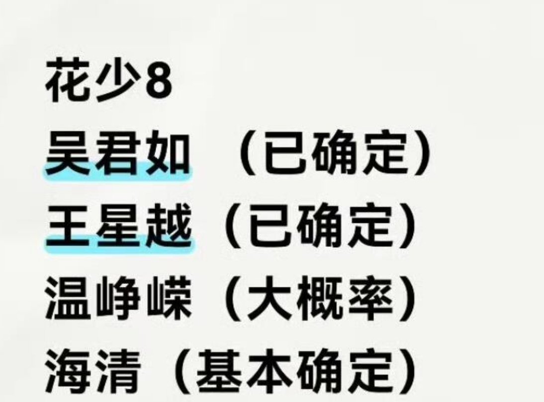 王星越花少8已确定,导演都忍不住出来爆料了,星月也是除了吴君如以外最先确认的,