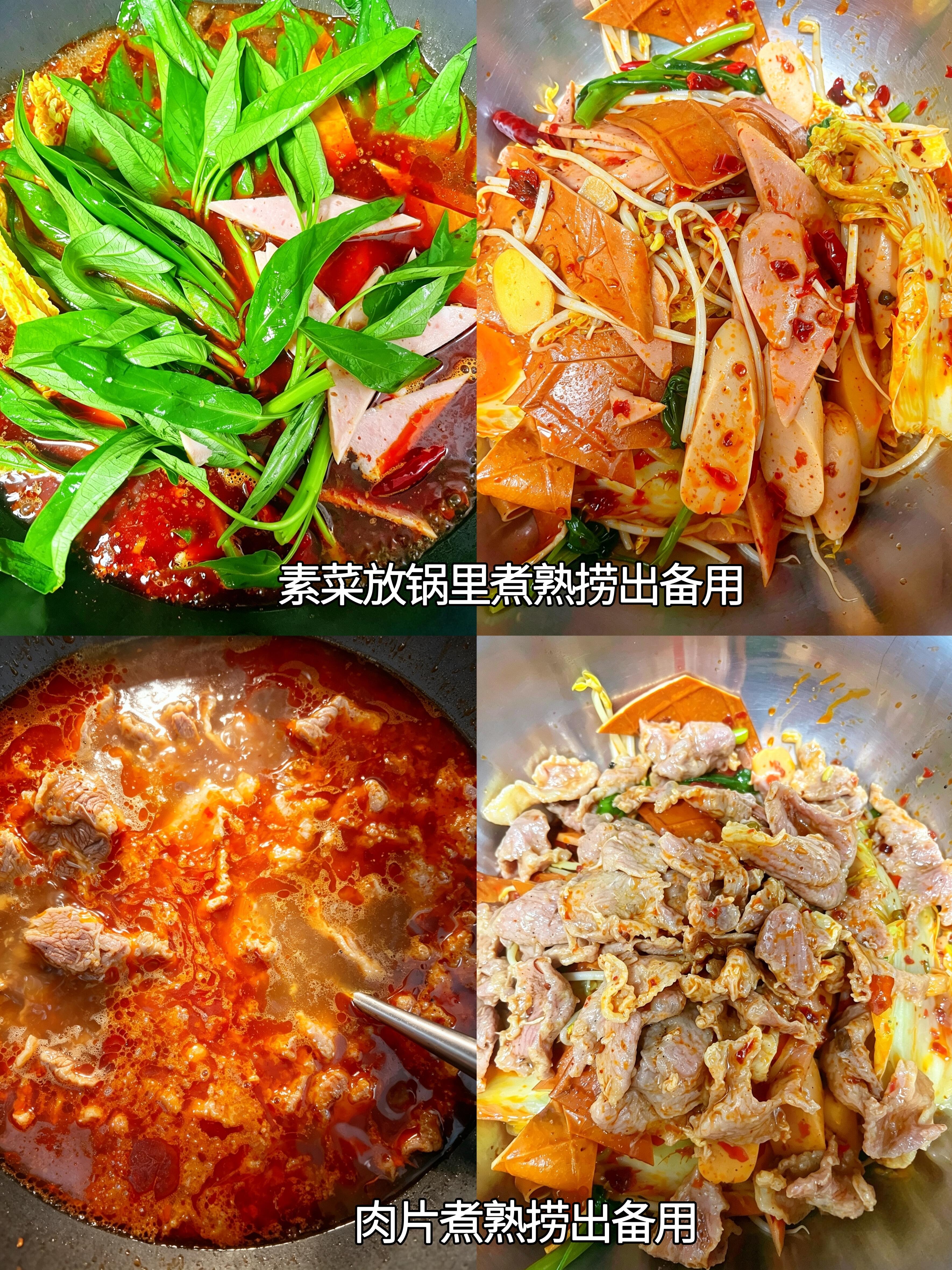 在家复刻水煮肉片|川菜馆水准,香嫩入味零失败 在家复刻水煮肉片,直接被香到上头!这浓郁的红油、诱人的卖相,完全不输外面的川菜馆,端上桌瞬间被抢光~ 很多人觉得水煮肉片难做,其实巨简单,没有复杂步骤,新手跟着做也能零失败,不用出门就能吃到正宗川味,太解馋了👇 🍳【食材准备】 猪里脊、豆芽、娃娃菜、豆干、午餐肉、空心菜 火锅底料一小块、葱姜蒜、干辣椒、花椒、生抽、盐、鸡精、淀粉 🥘【步骤超详细】 1. 里脊肉切成薄片,碗中加料酒、生抽、盐、淀粉,再淋一勺油,用手抓匀腌制10分钟,这样处理后的肉片,滑嫩又不柴,一口下去超入味! 2. 锅中倒油,油热后放入葱姜蒜爆香,加入一小块火锅底料,小火慢慢炒出浓郁红油,接着倒入适量清水,大火煮开。 3. 先把难熟的配菜放进锅里,煮至变软熟透,捞出后铺在大碗底部,打底备用。 4. 锅中水再次烧开后,下入腌制好的肉片,用筷子轻轻拨开,避免粘连,煮到肉片完全变色,就可以关火,连汤带肉一起倒进铺好配菜的碗里。 5. 在肉片表面铺满葱花、蒜末、干辣椒和花椒,烧一勺滚烫的热油,淋在上面,滋啦一声,香味瞬间迸发出来,香到让人忍不住流口水! 做好的水煮肉片,肉片滑嫩入味,浓郁的红油汤汁裹满每一根配菜,鲜辣过瘾,拌米饭吃真的绝了,连吃三碗都不够! 做法简单又好吃,不用复杂技巧,快拉上你的饭搭子一起做,在家就能实现水煮肉片自由~