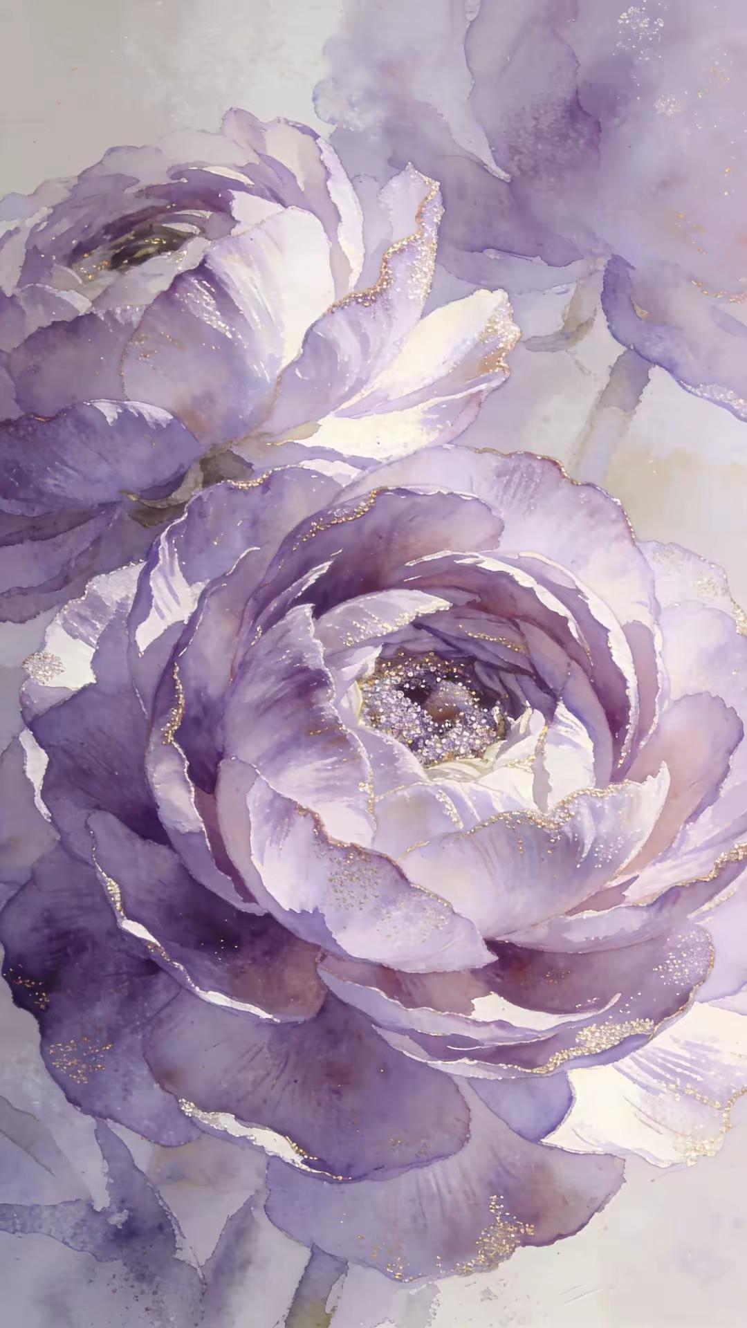 手机壁纸~晕染开的紫调温柔,被鎏金碎光吻过的层层花瓣,像揉碎了一整个暮春的梦。花影在水彩里轻轻舒展,带着细碎的微光,把温柔与浪漫藏进时光里