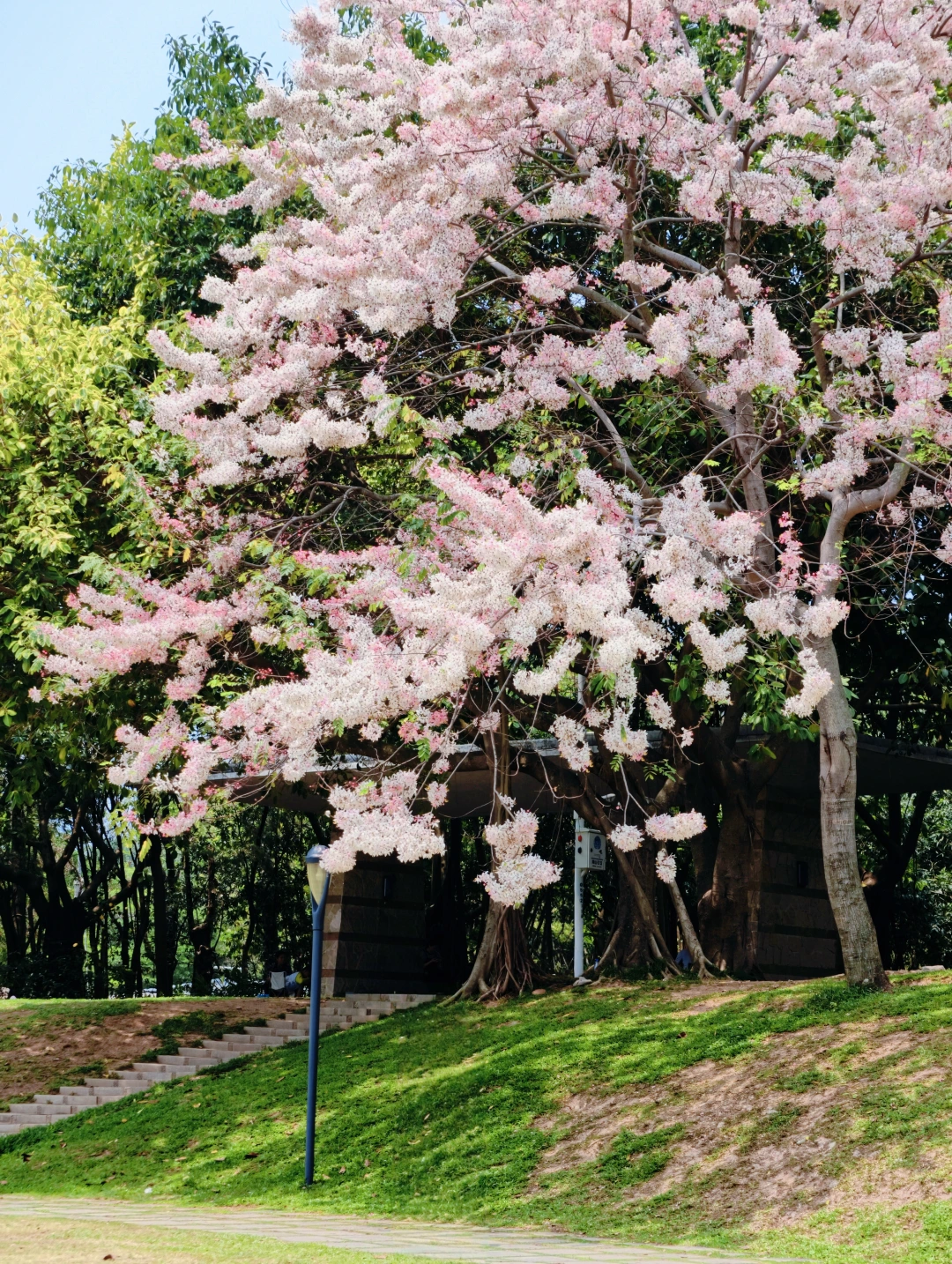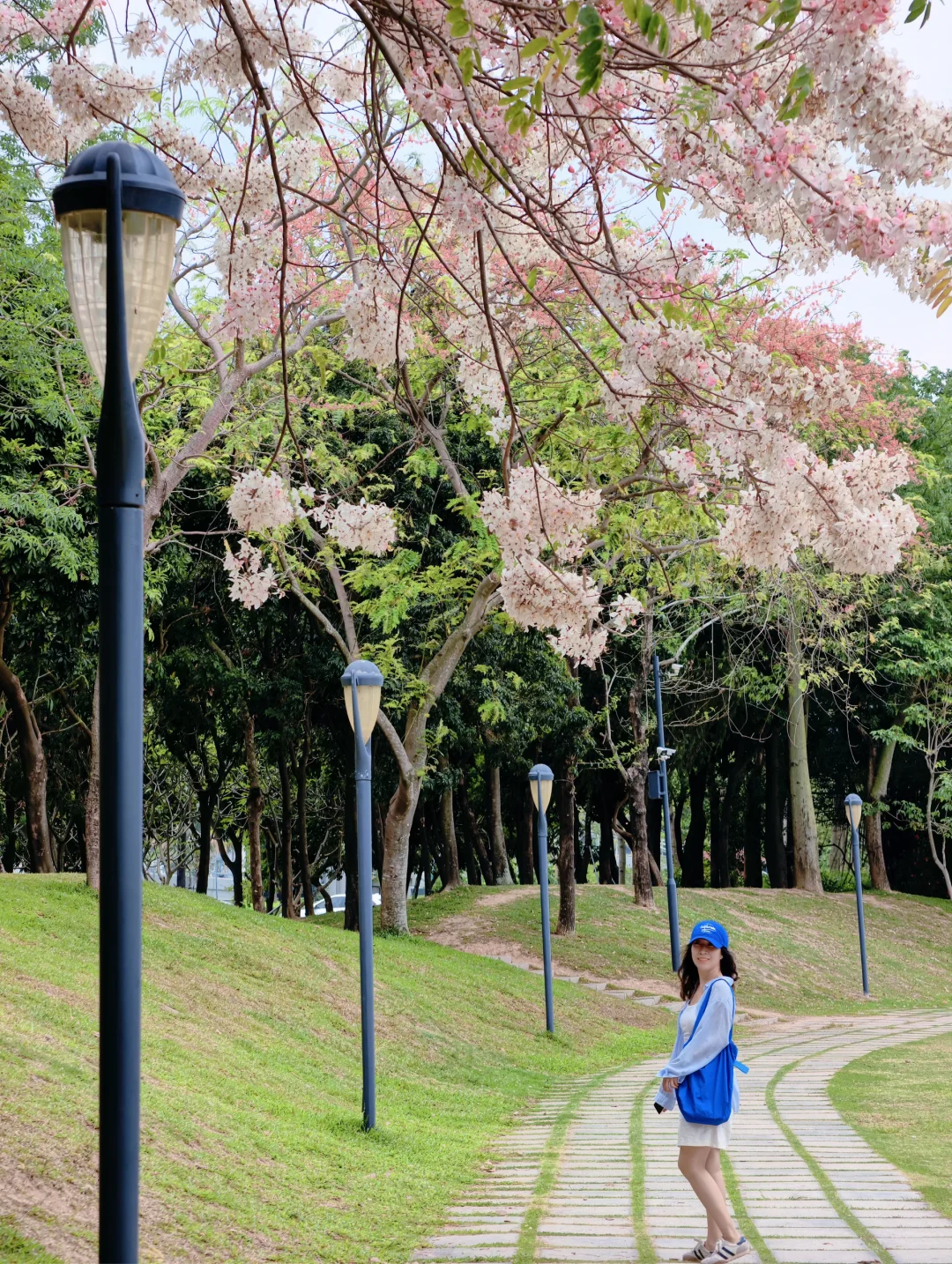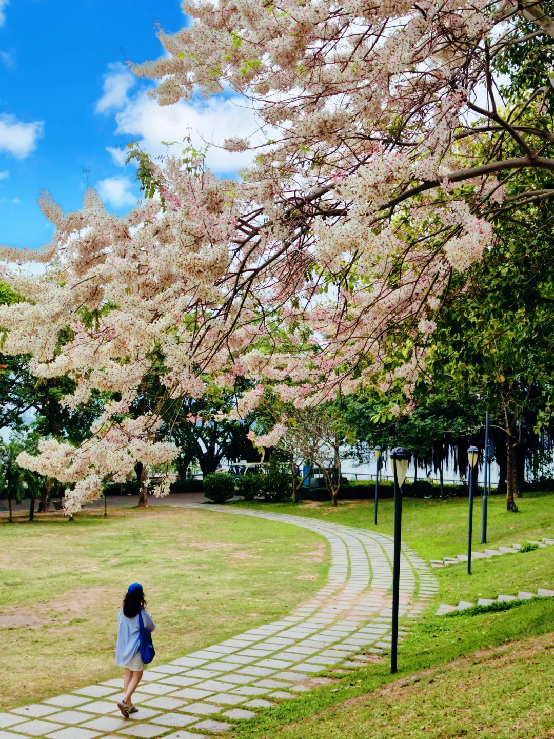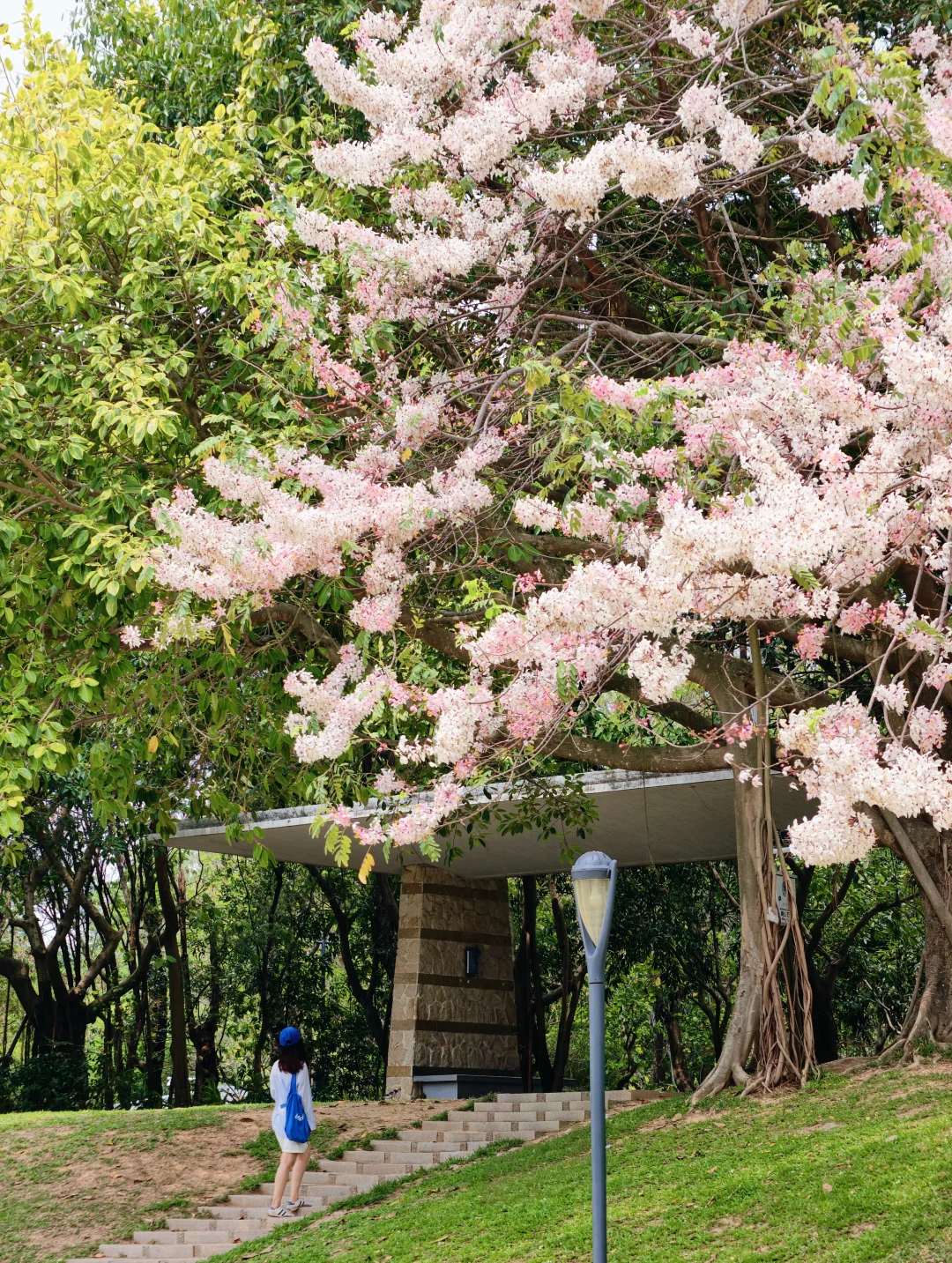 到深圳湾公园又发现了一棵花旗木之王 体积比公园其他地方看到的都要大且茂盛 亲测虽然只有一棵但真的太好拍了 正好有楼梯和草坡,树下拍人像更好拿捏了 人还没有很多,不用去地铁口那片挤了 - 📍深圳湾公园-北湾鹭港 🎫免门票 🚇我是骑行过去的,距离深圳湾公园地铁口约15分钟