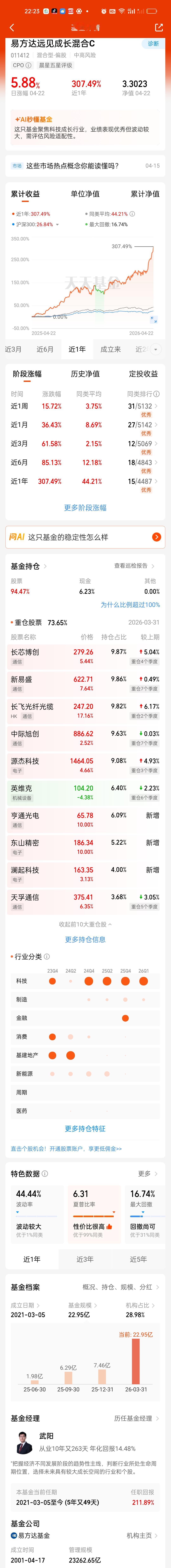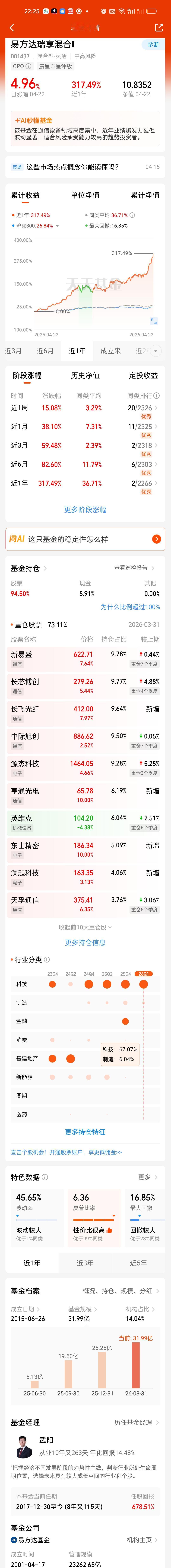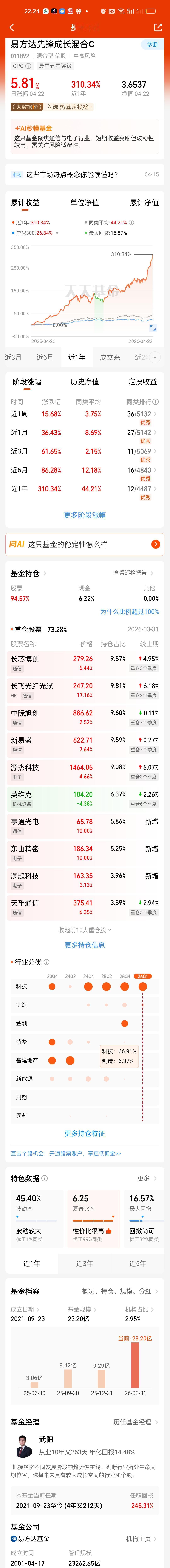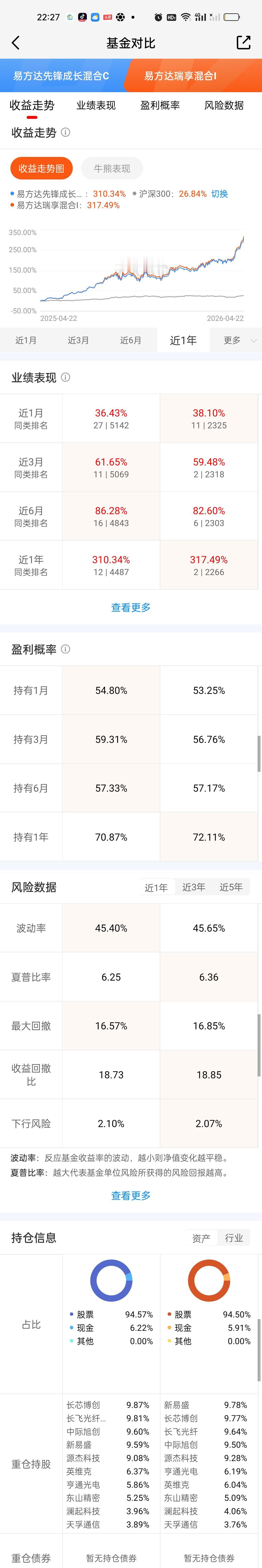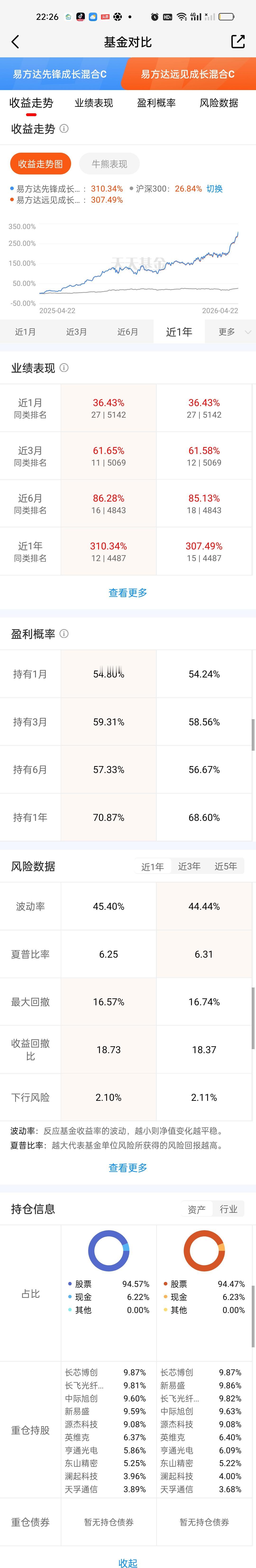 易方达三兄弟(瑞享,先锋,远见)也属于CPO板块的老牌基金,中流砥柱。这次更新,它们的规模都增加了很多。调仓换股完成后,三只基金的前十大重仓股是一模一样的。不同的是每只个股的持股比例。基金经理是同一个人,所以表现基本是差不多的。 三只基金的前十大重仓股占比都从60%增加到了73%左右。持股进一步集中。远见和先锋的基金规模都增加了20多亿。这次调整都新增了3只个股,亨通光电,东山精密,澜起科技。舍弃了仕佳光子,沪电股份和生益电子。大幅提升长飞光纤,长芯博创和源杰科技的仓位,长芯博创从第六直接升到了第一,长飞光纤由第九升到了第三,源杰科技第六升到第五。英维克与天孚通信的仓位下降了一些。 瑞享的调仓相对复杂一些。这次调整新增了4只个股,长飞光纤,亨通光电,东山精密,澜起科技。舍弃了仕佳光子,沪电股份,深南电路,生益电子。前面两只基金原本就有长飞的仓位,这次只是加仓操作,瑞享之前没有长飞的仓位,这次是直接一步到位,买成了第二大重仓股。其它操作没有大的变化,也是长芯博创和源杰科技大幅加仓,英维克与天孚通信大幅减仓。