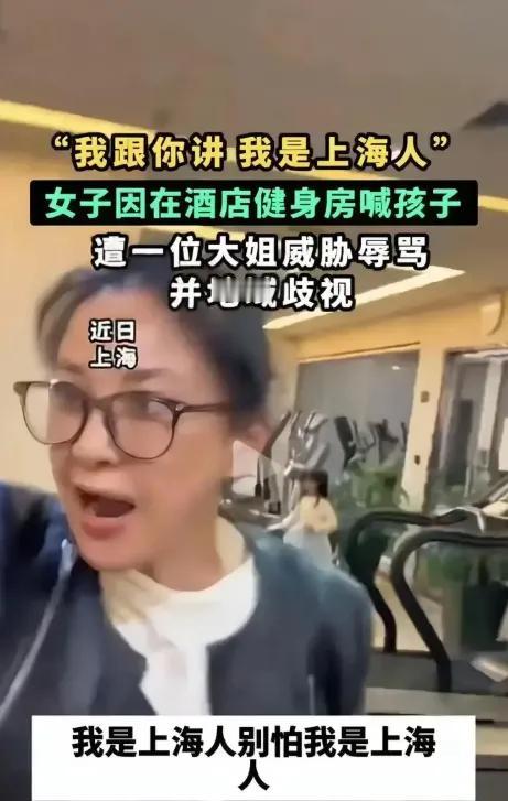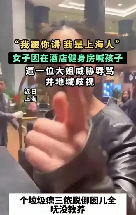 喊一声孩子,到底触犯了谁的天条? 这几天,上海酒店健身房那事儿,看得人血压飙升!一个妈妈,在跑步机上扭头喊了三声女儿,音量还没跑步机噪音大,旁边一位黑衣大姐瞬间炸了!冲上去按停机器,指着鼻子骂“外地瘪三”,反复强调“我是老上海人”。 视频里,宝妈手臂被抓出红痕,解释被无视,躲到大堂还被追着骂。全网都在问!凭什么? 说实话,这事儿早不是地域歧视四个字能概括的了。它戳中的是每个普通人心里那根弦!在公共空间,我们的分寸感到底在哪? 健身房要安静,没错。但一个母亲担心孩子,轻声唤几句,真的罪大恶极吗?如果当时她大喊大叫,长时间喧哗,指责或许成立。可事实是,她的声音被器械声盖过,其他健身者都没反应。 黑衣女子的暴怒,表面是“噪音”,内里是“我看你不顺眼”的傲慢。那句“我是上海人”,成了她挥舞的大棒,仿佛籍贯能赋予她训斥他人的特权。 可真正的城市气质,从来不是靠排外建立的。上海的包容,恰恰源于无数外来者的奋斗。网友说得对:“她代表不了上海人,她只代表她自己。” 这件事最让人心寒的,是那份缺失的同理心。我们都有可能在公共场合遇到不便,可能是孩子的哭闹,可能是电话的铃声。将心比心,提醒可以,但何必恶语相向、动手伤人? 最新进展里,女子正脸被曝光,追到楼下骂的架势,更显荒唐。她以为的“威风”,在镜头前只剩滑稽。 说到底,文明不是贴在墙上的标语,是刻在骨子里的尊重。下次当你忍不住想“教育”别人时,不妨先问自己!我的分寸,够吗?