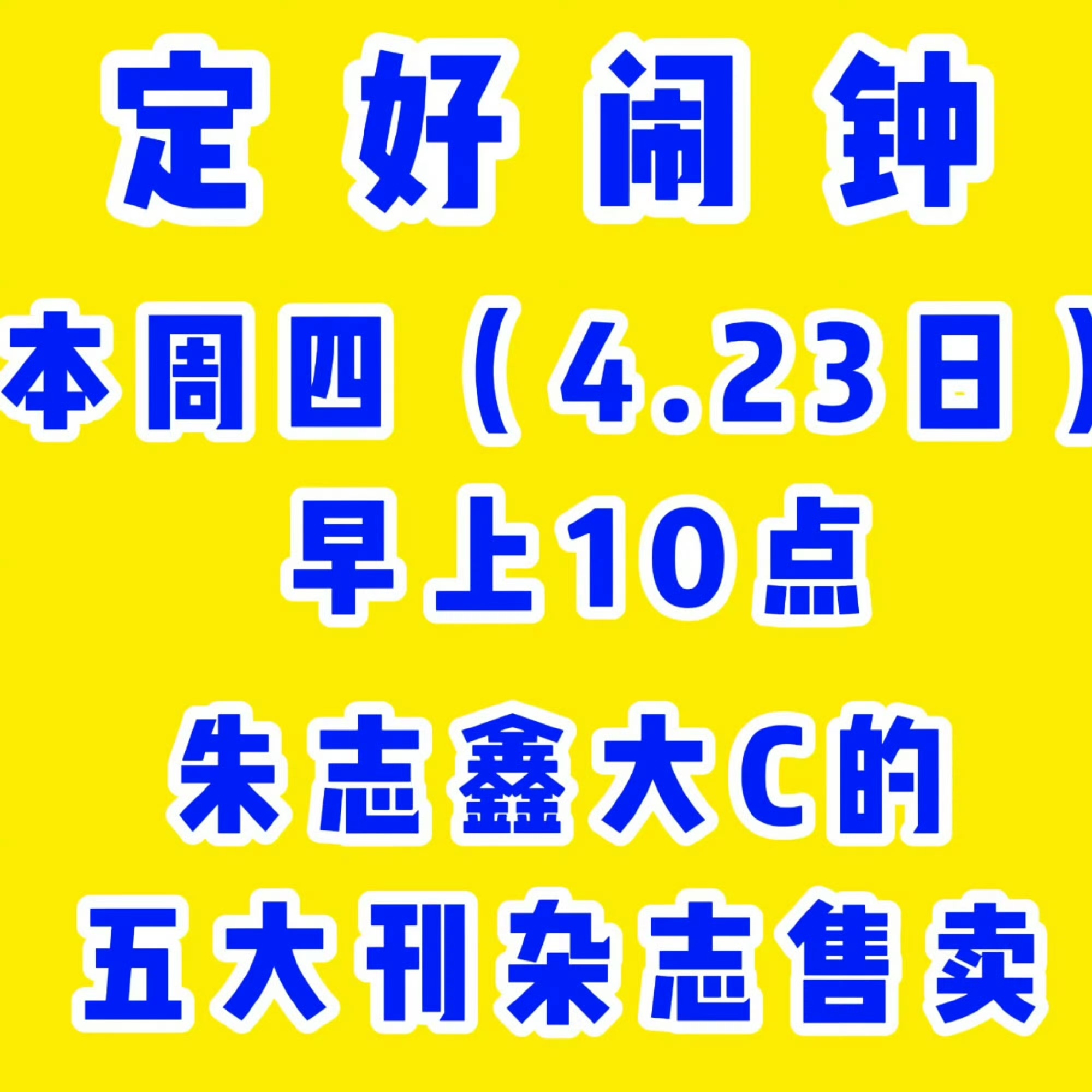 23号周四早上10点记得来购买【朱志鑫站大C封面】的杂志!