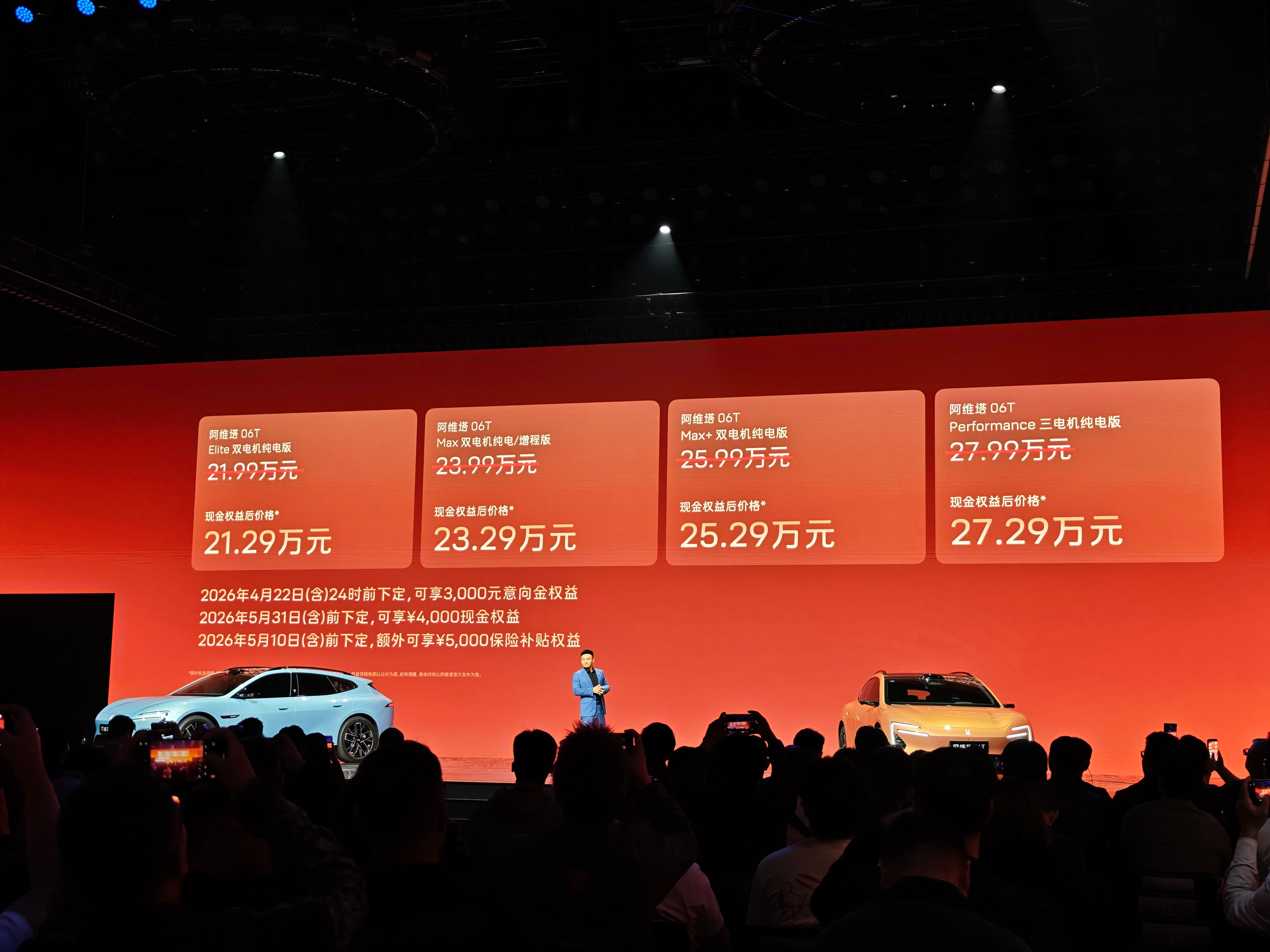 阿维塔06T上市21.99万起以前总觉得,性能、豪华、智能这些词,得是百万级豪车才配谈。结果到了今天,智电时代直接把这套体验打下来了。说白了,不是豪车门槛低了,是中国新能源真的把技术和配置卷下来了。年轻人第一台性能车阿维塔06T这次有点意思,不玩“低价入门、配置后补”的老套路,直接把 6T 价值摆上台面:有品味、有智能、有双驱、有性能、能远行、也更让人安心。放在这个价位的运动轿车里,这种完整度其实不多见。而且,权益后到手价21.59万起!今日24点前下定,可享3000元意向金权益!如果是我来选,我会更建议直接看 Max版。原因很简单:太行智控2.0、太行分布式电驱、华为全球量产最高896线激光雷达、长续航、前排智能电动门,这些东西放在一起,才是真正把“全场景运动轿车”这几个字撑起来。一步到位买车,阿维塔06T Max版更值,也更像年轻人第一台性能车该有的样子。