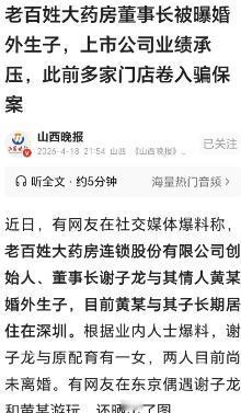 深圳,一网友在境外旅游,偶遇某医药公司董事长和一女子游玩,网友拍下了照片,并在线求证,有知情人说,董事长有原配妻子,妻子和他有一个女儿,可网友曝料,说他和情 人也生了儿子,这下麻烦大了,如果这事是真的,那么s 生 子也有权利继承财产,原配的女儿悲剧了。 近日,一则网友爆料在网上引发热议,有网友在东京旅游时,偶遇老百姓大药房创始人、董事长谢某和一名女子一同游玩,随手拍下照片后在线求证,很快就有知情人站出来透露关键信息。 知情人表示,谢某有原配妻子陈某,两人还育有一个女儿,目前并没有离婚,而网友进一步爆料,谢某和这名同游女子黄某早已生有一个儿子,黄某和孩子长期居住在深圳。 消息一出,瞬间引发全网讨论,大家最关心的,莫过于如果这事属实,那个非婚生的儿子,到底有没有权利继承财产,原配的女儿会不会因此吃亏。 截至目前,老百姓大药房方面还没有对这件事作出任何官方回应,记者此前向公司发去采访请求,也没有得到回复。 不过从公开资料来看,谢某身份不一般,不仅是上市公司董事长,还是多届全国人大代表,他和原配陈某夫妇,合计持有老百姓大药房27.90%的股权和表决权,是公司的实际控制人。 很多人觉得,非婚生子女不该有继承权,说白了就是觉得名不正言不顺,但法律上可不是这么规定的。 根据《民法典》,非婚生子女享有与婚生子女同等的权利,任何组织和个人都不能加以危害和歧视,这就意味着,只要能证实那个孩子确实是谢某的,在没有特别遗嘱安排的情况下,他就和原配的女儿一样,拥有法定继承权。 举个简单的例子,如果谢某没有立遗嘱,等到他去世后,他的个人财产会按照法定继承来分配,配偶、婚生子女、非婚生子女都是第一顺序继承人。 原本只有原配和女儿两人分割的财产,一旦多了一个非婚生儿子,原配和女儿能分到的份额就会减少,这也是大家觉得原配女儿“悲剧”的原因。 除此之外,这件事还可能带来更多连锁反应,谢某夫妇共同持有公司大量股权,要是原配因为这件事提出离婚,按照法律规定,谢某属于过错方,原配不仅可以要求多分夫妻共同财产,还能索要精神赔偿。 更关键的是,公司的控制权也可能受到影响,投资者已经开始担忧,夫妻关系破裂会让公司控制权变得不稳定,进而影响市场信心。 其实这事到现在还没有实锤,网友的爆料和照片只能作为线索,不能当成定论。 但不可否认的是,不管这事真假,都给不少人提了个醒,尤其是对于上市公司负责人来说,私德问题很可能影响公司发展,而且从法律层面来说,非婚生子女的继承权是明确的,不会因为出身而被剥夺。 至于后续会如何发展,还要看老百姓大药房的官方回应,以及当事人的处理方式,是冷处理维持现状,还是走到离婚分割财产的地步,目前都不好说。 但可以肯定的是,只要婚外生子属实,财产继承的纠纷几乎是不可避免的。 以上都是个人观点,对此您有什么不同的看法,可以在评论区留言讨论!!!
