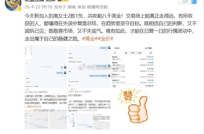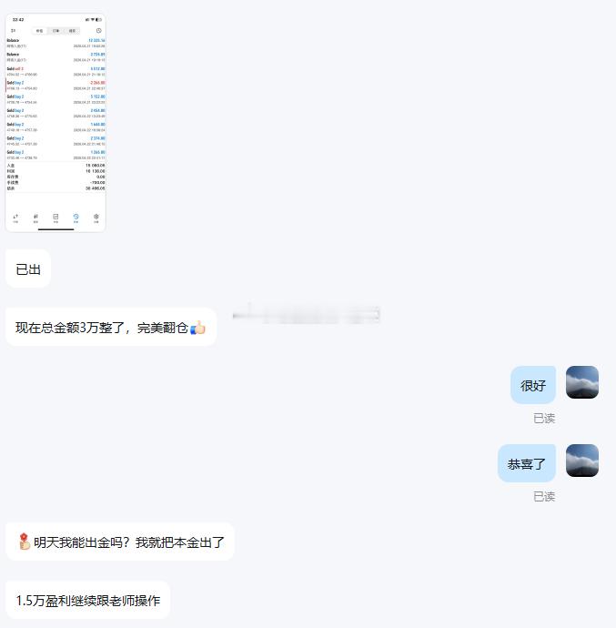 战绩为证,实力说话!高女士 1.5 万美金本金入场,如今直接翻仓至 3 万美金。浩荣团队从不辜负每一份信任,用精准的节奏把控、稳健的交易策略,陪客户拿下实打实的收益。翻倍跃升,只是开始。接下来的行情,继续和高女士同心同行,在投资赛道乘风破浪,一起创造更多财富传奇!黄金金价