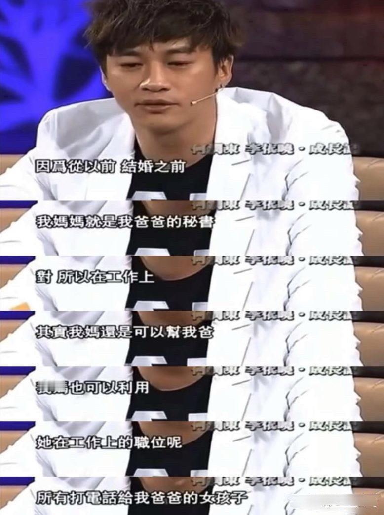 何润东说:“我妈妈以前是我爸爸的秘书,她在工作上帮助我爸爸很多,她也会利用职务之便,过滤掉那些给我爸爸打电话的女孩子。”