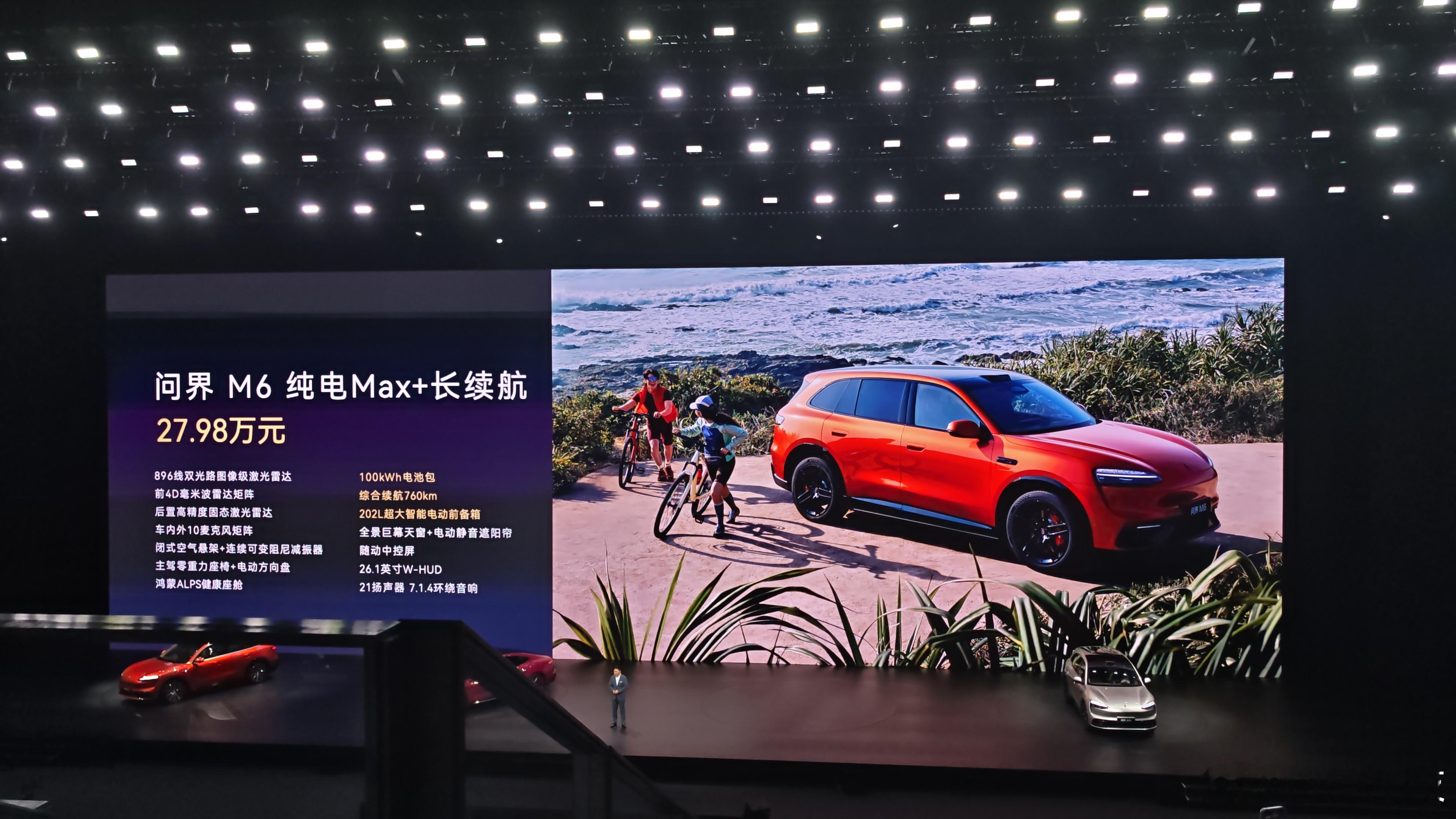 价格方面,问界M6为大家带来了四个版本:增程版Max+,25.98万增程版Ultra,27.98万纯电Max+长续航,27.98万纯电Ultra,29.98万鸿蒙智行发布会