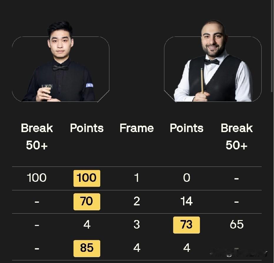 种子选手果然实力非凡,斯佳辉延续了本届斯诺克世锦赛种子选手的出色状态。 在与瓦菲的第一阶段上半场比赛中,4:1领先。首局斯佳辉就单杆轰出100分,之后又70:14拿下了第二局。虽然瓦菲单杆打出65分扳回一局,但第四局中斯佳辉再次轻松拿下后,3:1暂时领先。 此前已经有9名中国球手结束了自己的比赛,4名种子选手赵心童、吴宜泽、丁俊晖、肖国栋悉数晋级16强,而5名资格赛晋级的球员全部被淘汰出局。 除了斯佳辉,还有一名中国球手没有登场,那就是明天凌晨将会亮相的庞俊旭。他也是从资格赛杀进正赛的。