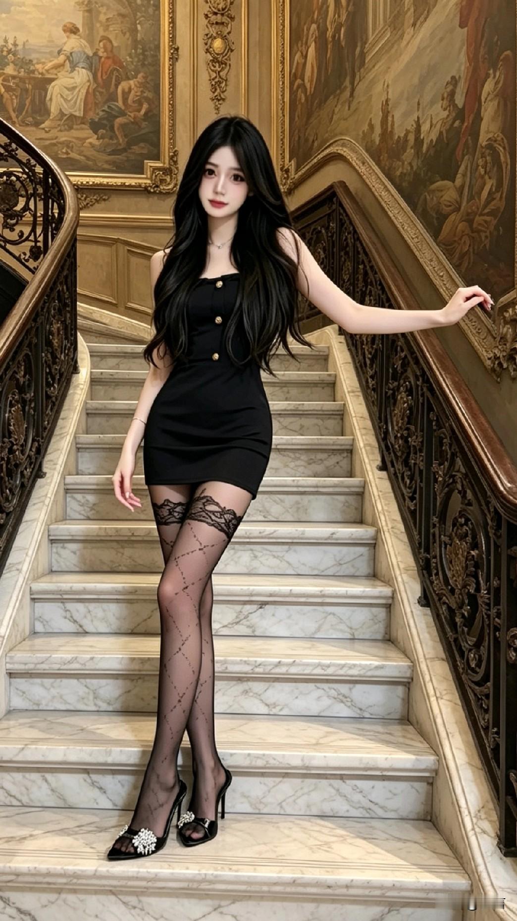 精致女生的穿搭小心机,黑丝才是精髓 优雅与性感并存的穿搭美学✨ 欧式宫廷风楼梯作为背景, 修身吊带小黑裙简约又高级, 蕾丝边黑丝尽显精致质感, 细钻配饰+水钻高跟提升整体格调, 温柔妆容搭配蓬松黑长直, 将女性的柔美与气场完美融合, 妥妥的精致贵气穿搭范本~ 职场黑丝穿搭 熟女黑丝穿搭 通勤黑丝穿搭 黑丝高跟御姐风 超透黑丝穿搭 时尚黑丝穿搭 高级黑丝袜