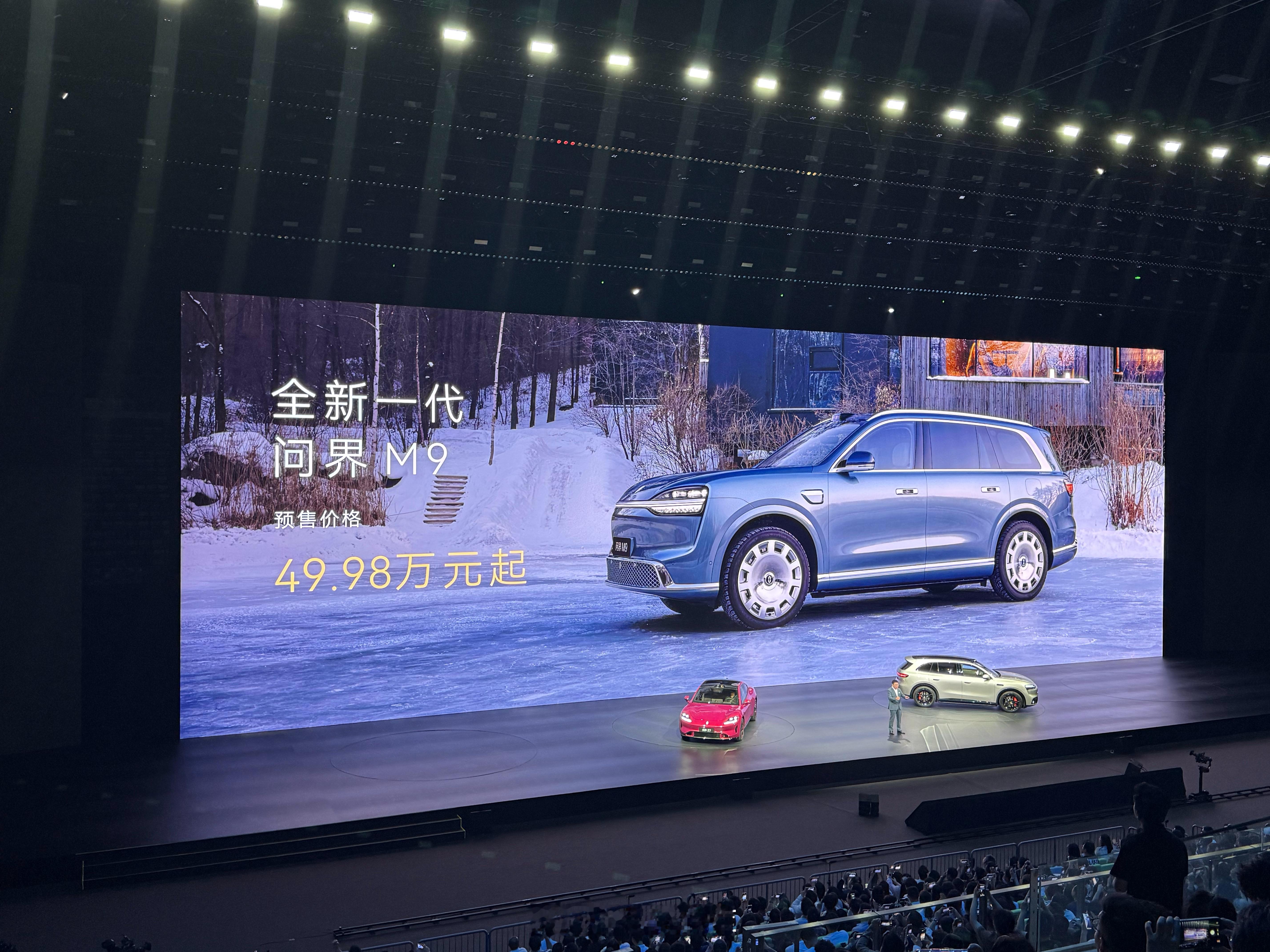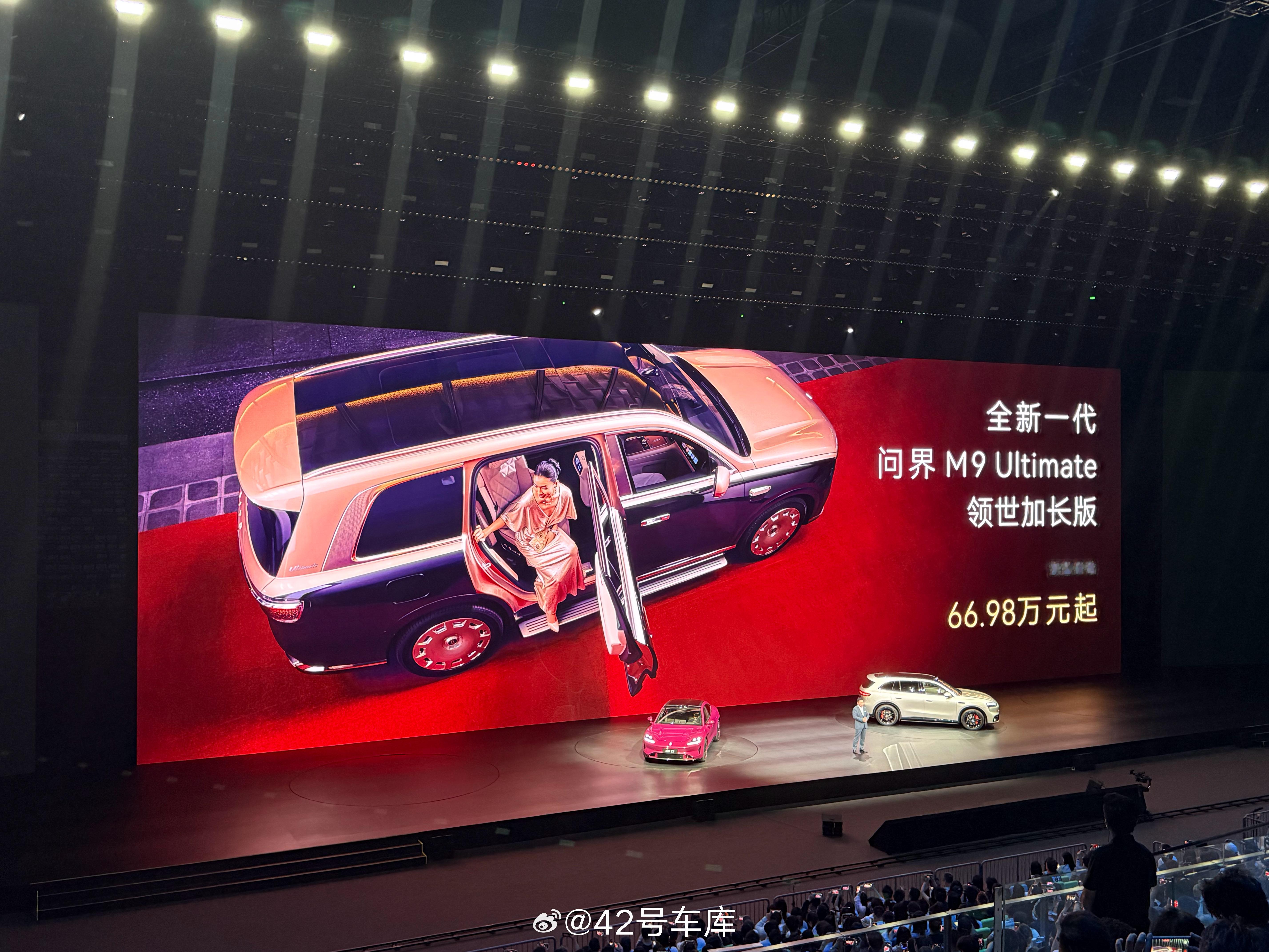 全新问界 M9 的预售价也公布了,标准版 49.98 万,创世加长版 66.98 万。