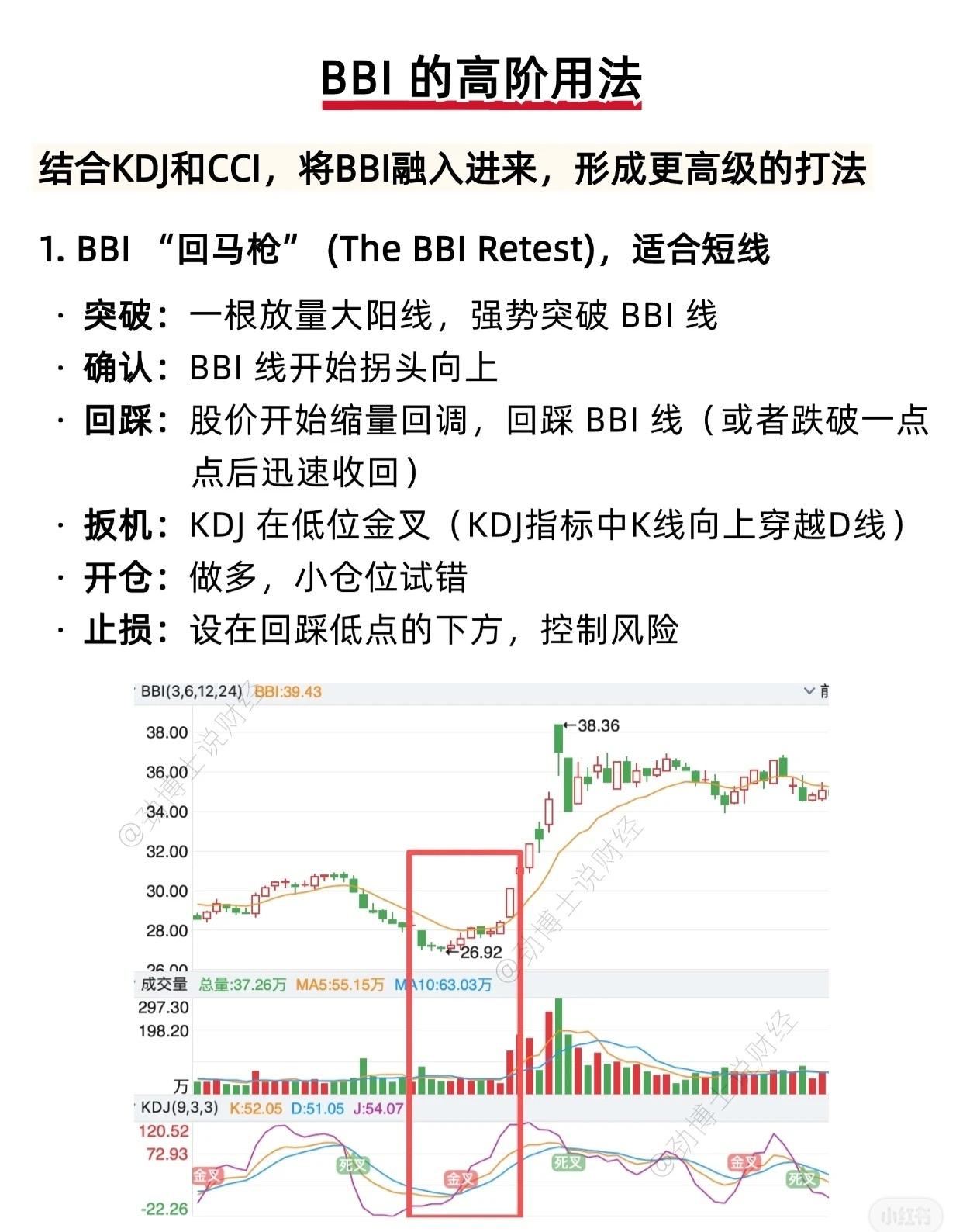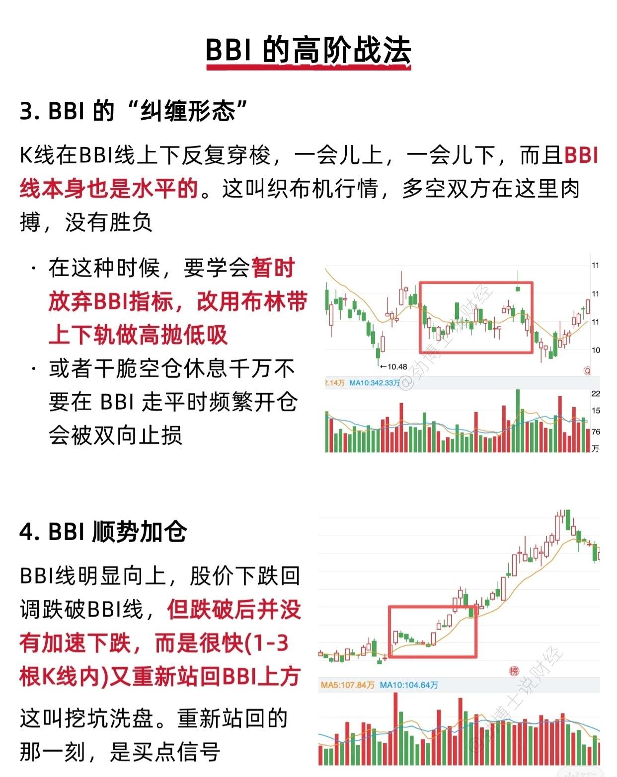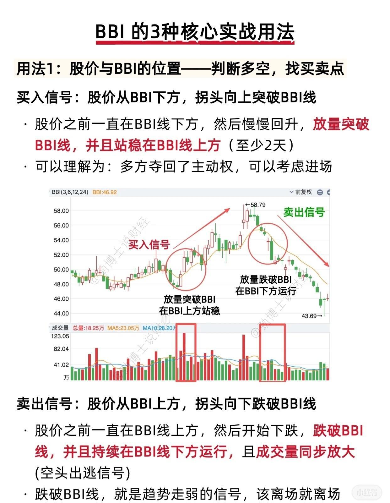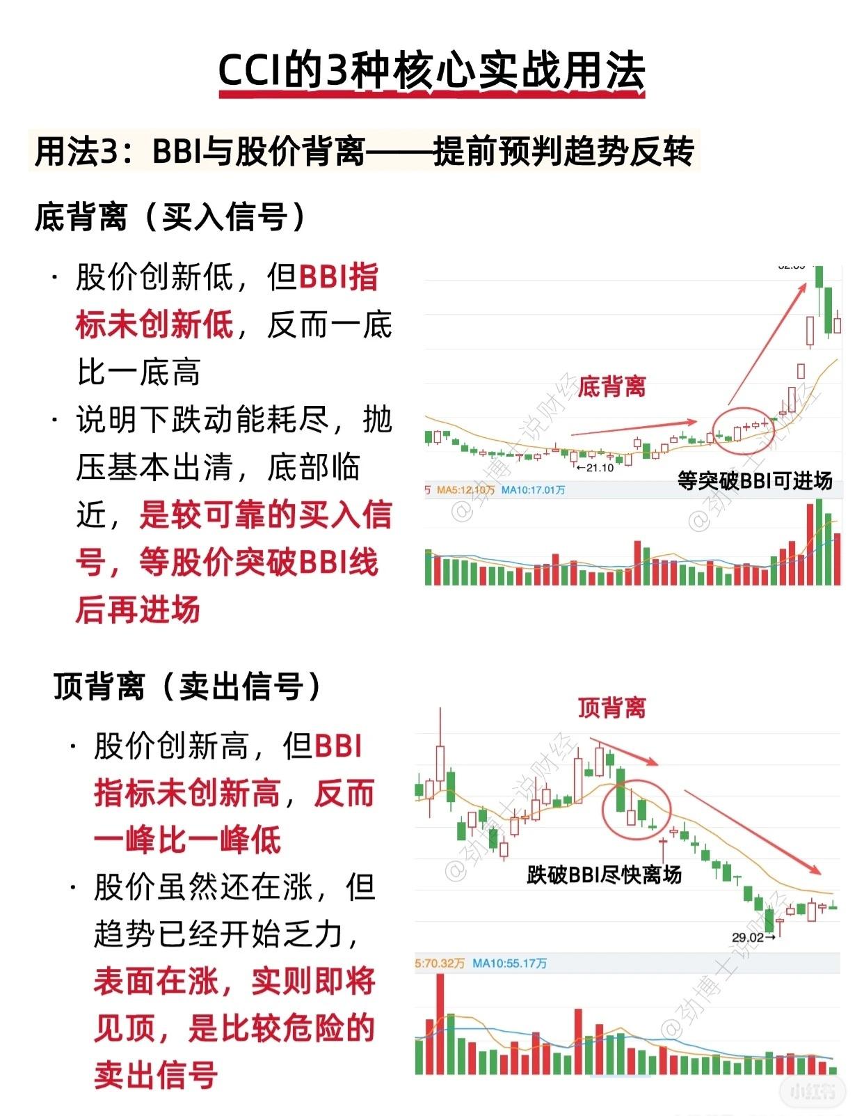 📌 使用BBI指标的注意事项 BBI(Bull & Bear Index,多空指标)是一种趋势跟踪型技术指标,但在实际应用中需注意以下几点,以避免误判或亏损: 1. 避免在震荡市中强行使用BBI BBI最适合用于有明确趋势的行情(无论是多头还是空头)。在震荡市中(股价围绕BBI线反复上下穿梭),BBI信号会频繁切换,极易产生“假突破”或“假跌破”,导致投资者频繁买卖、被市场“来回割韭菜”。 ✅ 建议:震荡市中应“多看少动”,等待趋势明朗后再操作。 2. 不可单独依赖BBI,需结合其他指标验证 任何单一技术指标都存在局限性。若仅依据“股价突破/跌破BBI线”作为买卖依据,极易遭遇假信号。 ✅ 建议:结合成交量和MACD等指标综合判断,可有效过滤虚假信号,提高决策准确率。 3. BBI具有滞后性,仅能跟随趋势而非预测趋势 BBI是基于历史移动平均线数据计算得出的,因此天然带有滞后性,无法提前预判趋势启动点,只能跟随趋势运行。 ✅ 注意:使用BBI时需意识到其“时间差风险”,并结合实时成交量、基本面消息、市场情绪等多维度信息,进行综合研判,避免盲目追涨杀跌。 — 💡 总结一句话: BBI是趋势跟随者,非趋势预言家——用对行情、组合指标、警惕滞后,方能事半功倍。