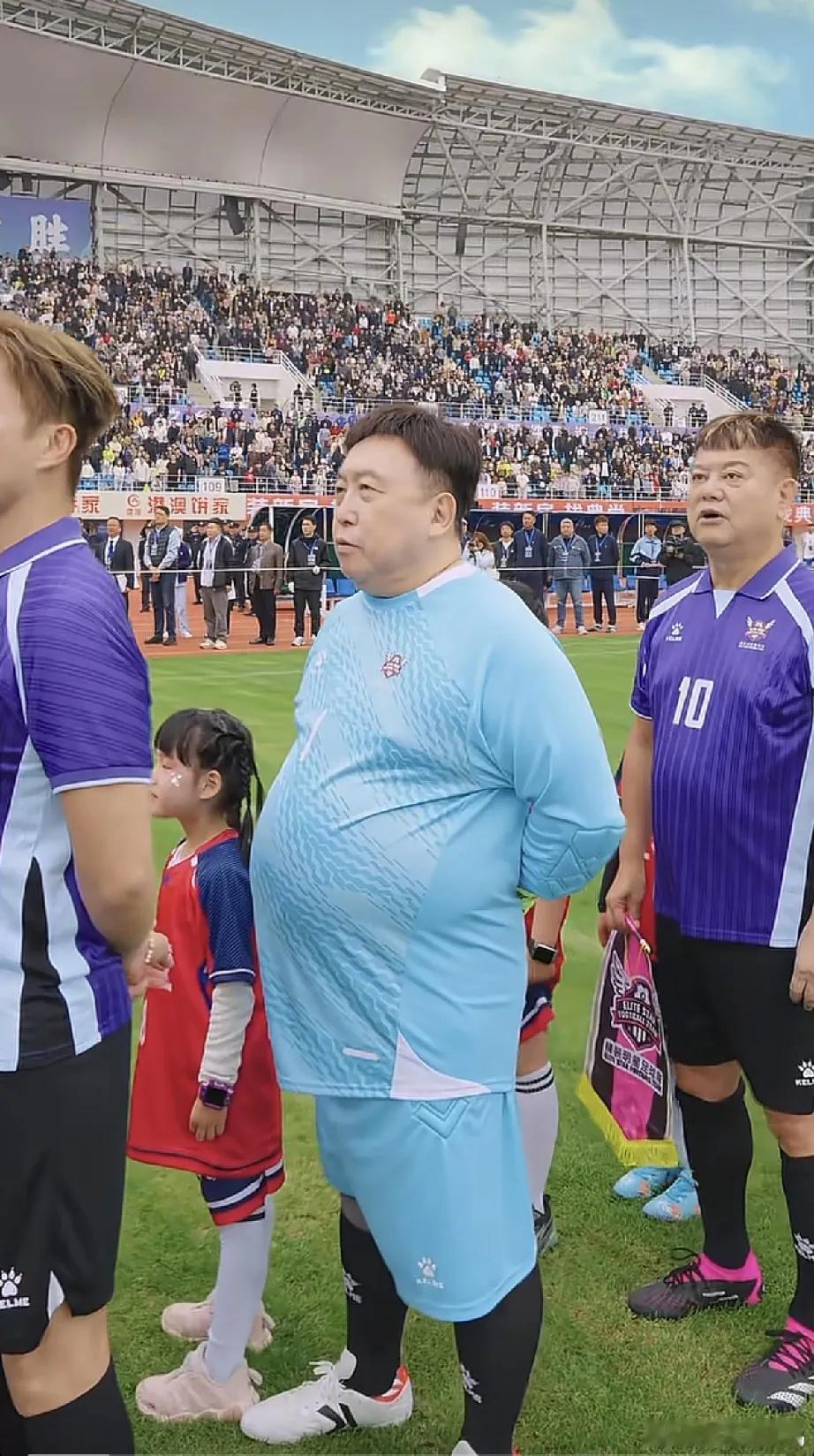 导演王晶跟着明星足球队踢球前唱国歌的画面曝光,这肚子也太雷人了,怎么那么大呢?感觉肚皮上一层油,赘肉特别多,就像游泳圈似的鼓了起来。