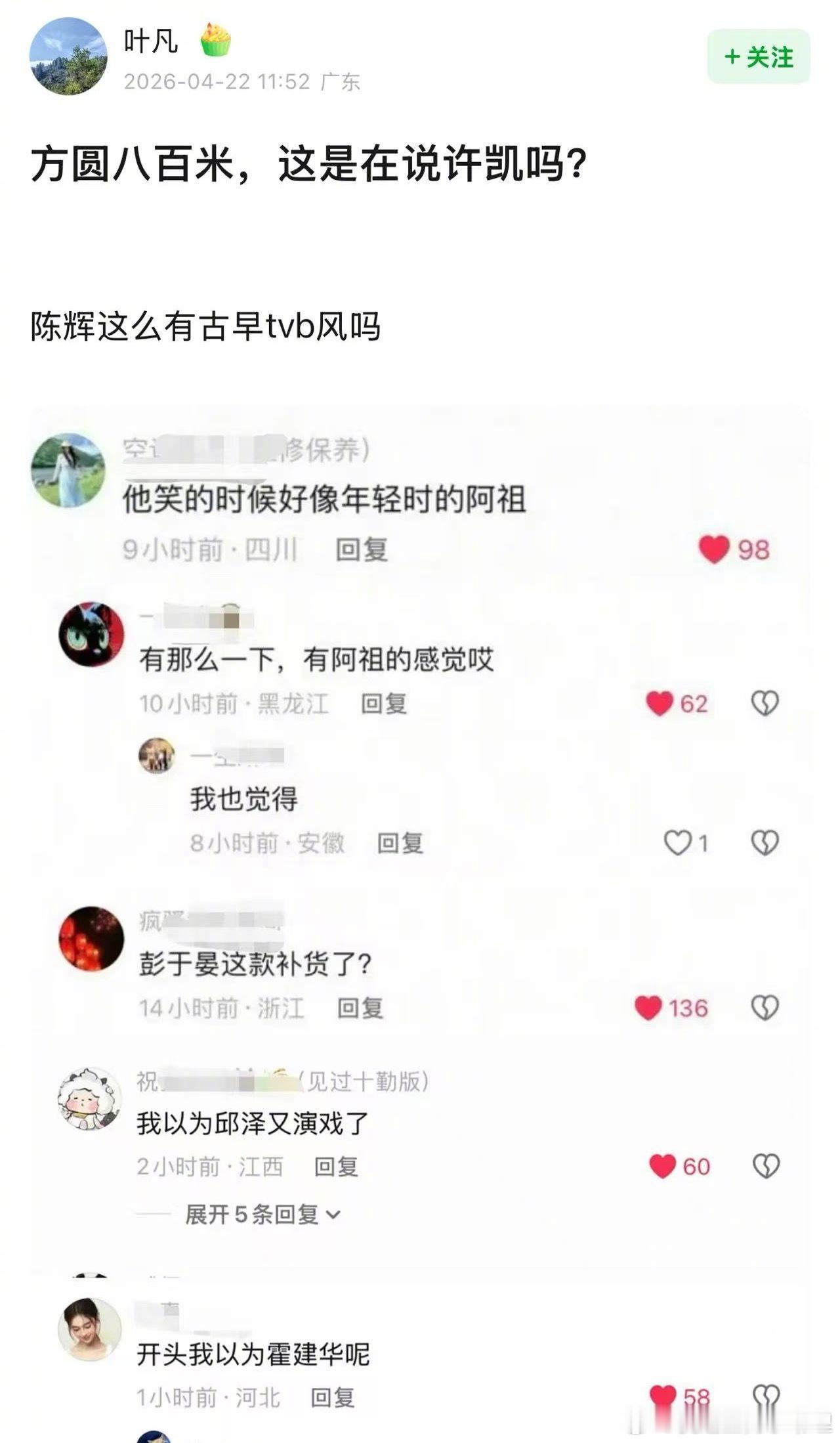 许凯在方圆八百米里的表现大获好评,很多人说他像以前tvb剧里的演员,看到了吴彦祖和古天乐的影子,演硬汉很有港风感,你们觉得呢?