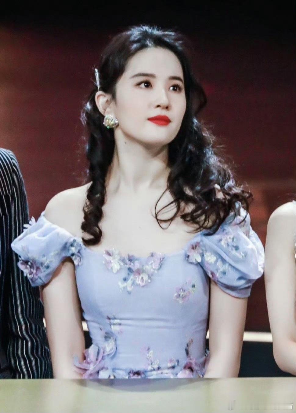 刘亦菲这身礼裙以香芋紫为主色调,温柔又显贵气,方领泡泡袖设计,巧妙露出肩颈线条,甜美公主感十足。