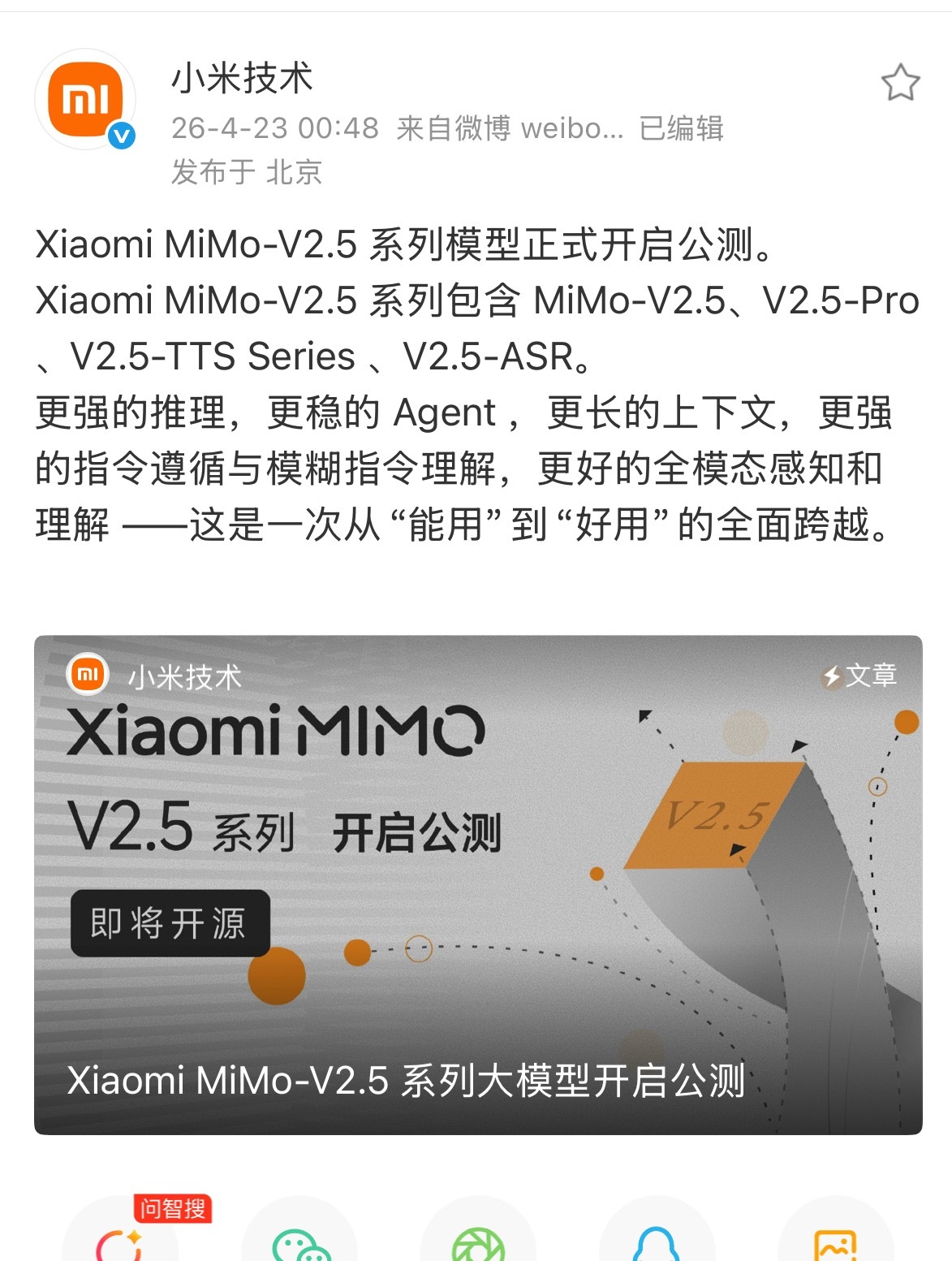我草?深夜小米又发出行业级王炸!之前的V2已经调用量全球第四了,这次V2.5得有多牛?等我明早解析!